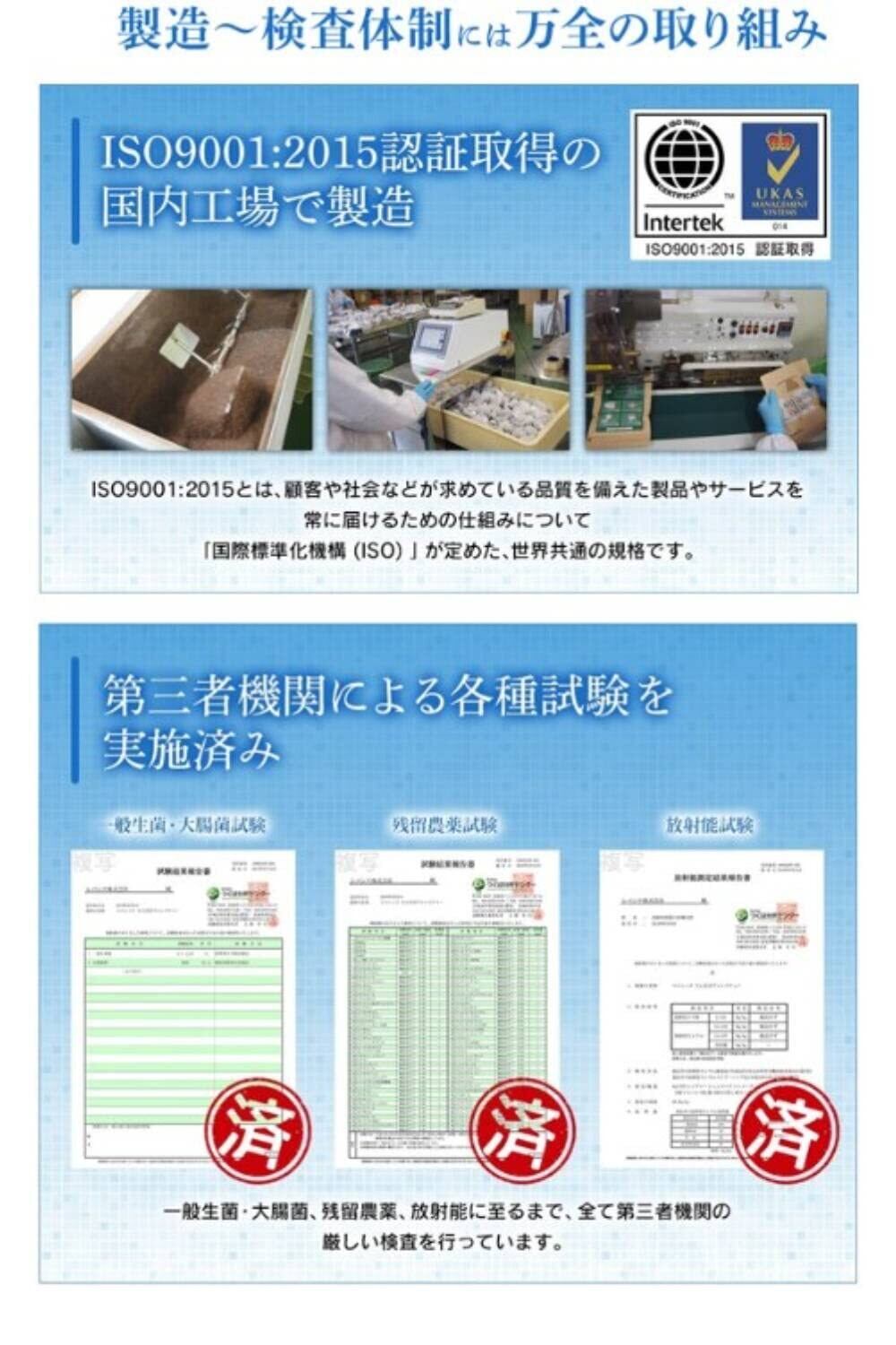 【徹底した品質管理】大切な時期だからこそ、品質管理にはこだわった商品をお届けします。製造は、ISO9001:2015認証取得の国内工場を選定。第三者機関による各種試験も実施済みです。(一般生菌・大腸菌試験、残留農薬試験、放射能試験)