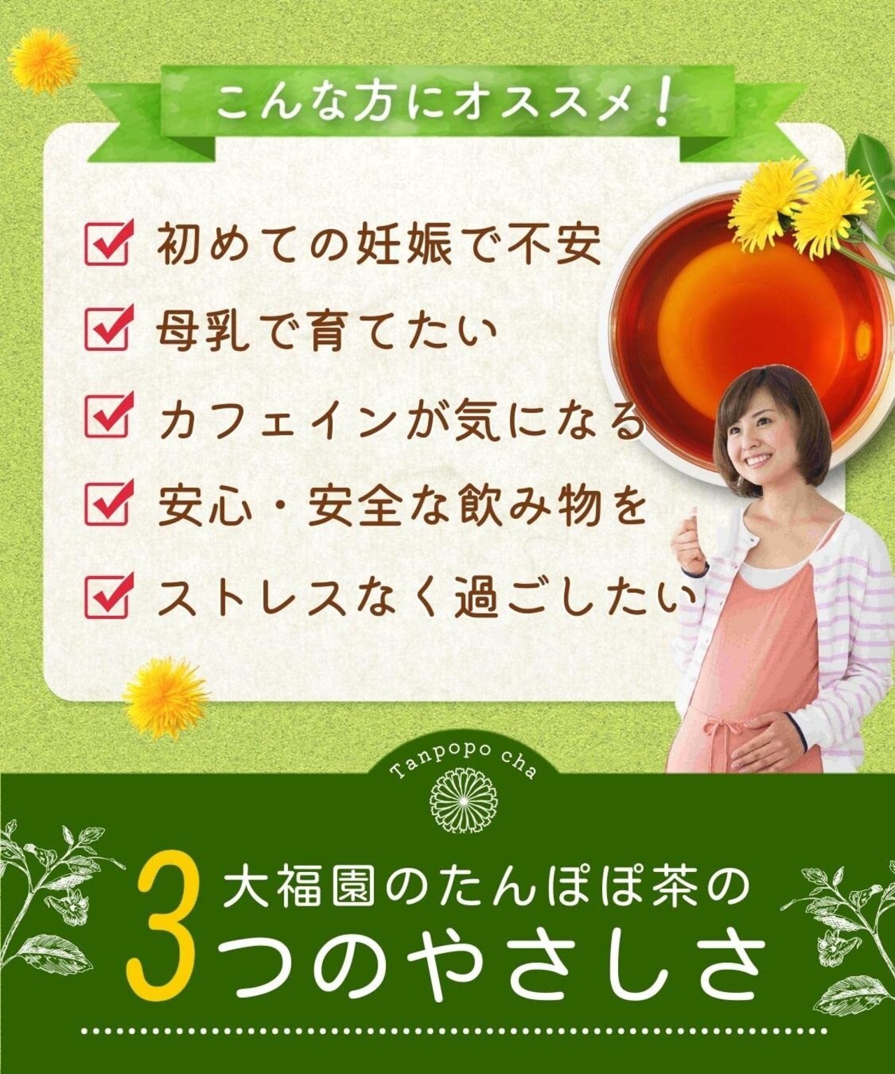 【妊娠・授乳中の方にもおすすめ】たんぽぽ茶は、妊娠中や授乳中の方にも安心してお飲みいただける栄養素が豊富。コーヒーのような風味があり代替品としても最適です。