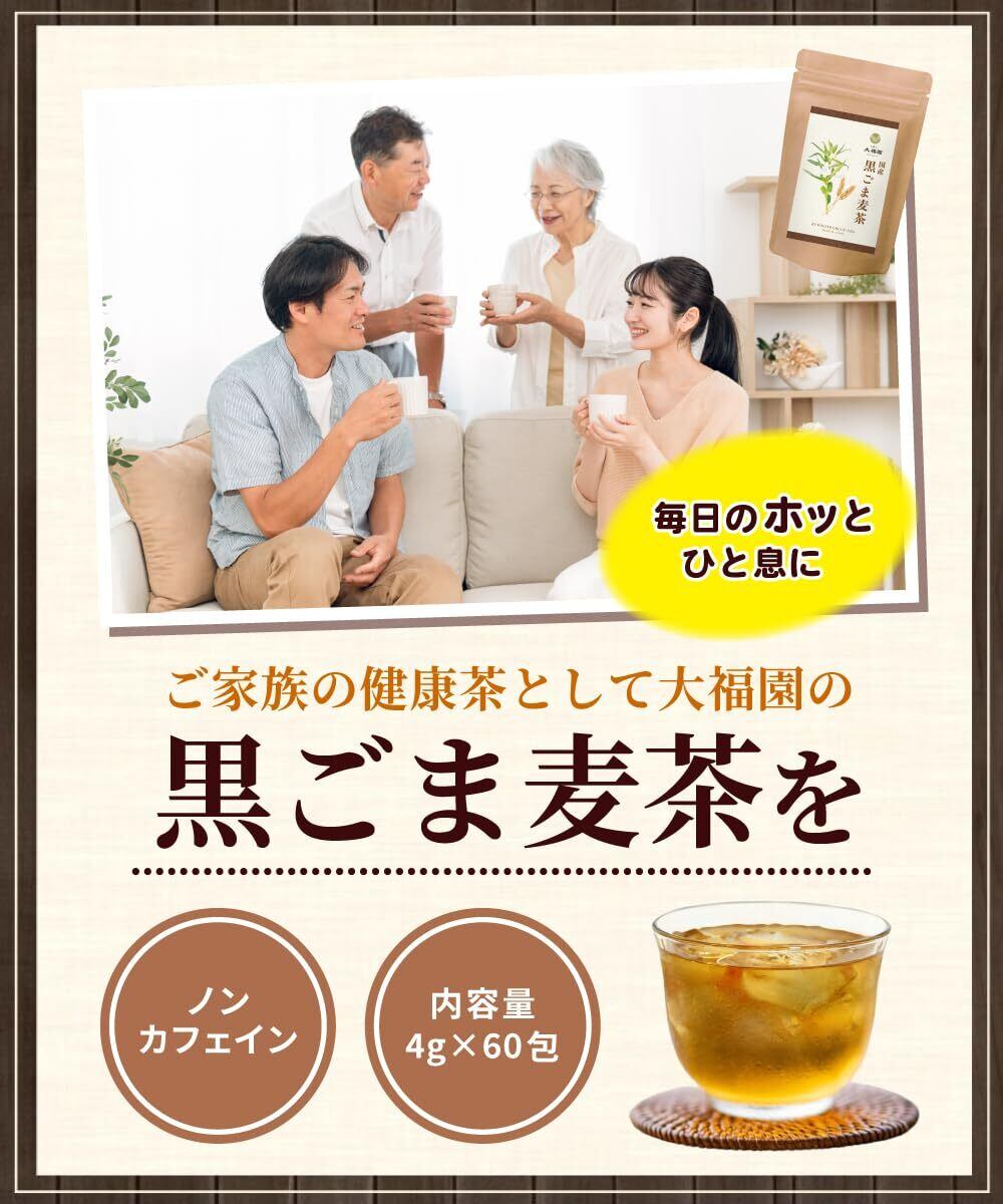 お茶の大福園 黒胡麻麦茶 【 大容量 60包入】 国産 無添加 ティーバッグ 胡麻麦茶 ごま麦茶 国産 60包 (麦茶,4g×60包) J.S.A.認定ソムリエ監修