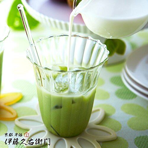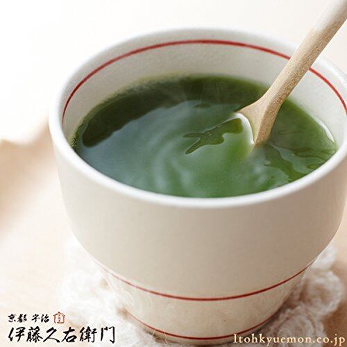 誰にでも飲みやすいように作られた水で溶いてサッと飲める、お手軽な逸品です。180ccの水に20gを目安に溶かしてお召し上がりください。(約15杯分です) 伊藤久右衛門は江戸後期・天保三年、初代伊藤常右衛門(いとうつねえもん)瀧蔵が田原村名村(現宇治田原 南)にて茶業に携わったのがはじまりです。その後も代々茶づくりを継承してまいりました。日本が世界に誇る京都の上質な宇治抹茶を使った品々をぜひお楽しみください。
