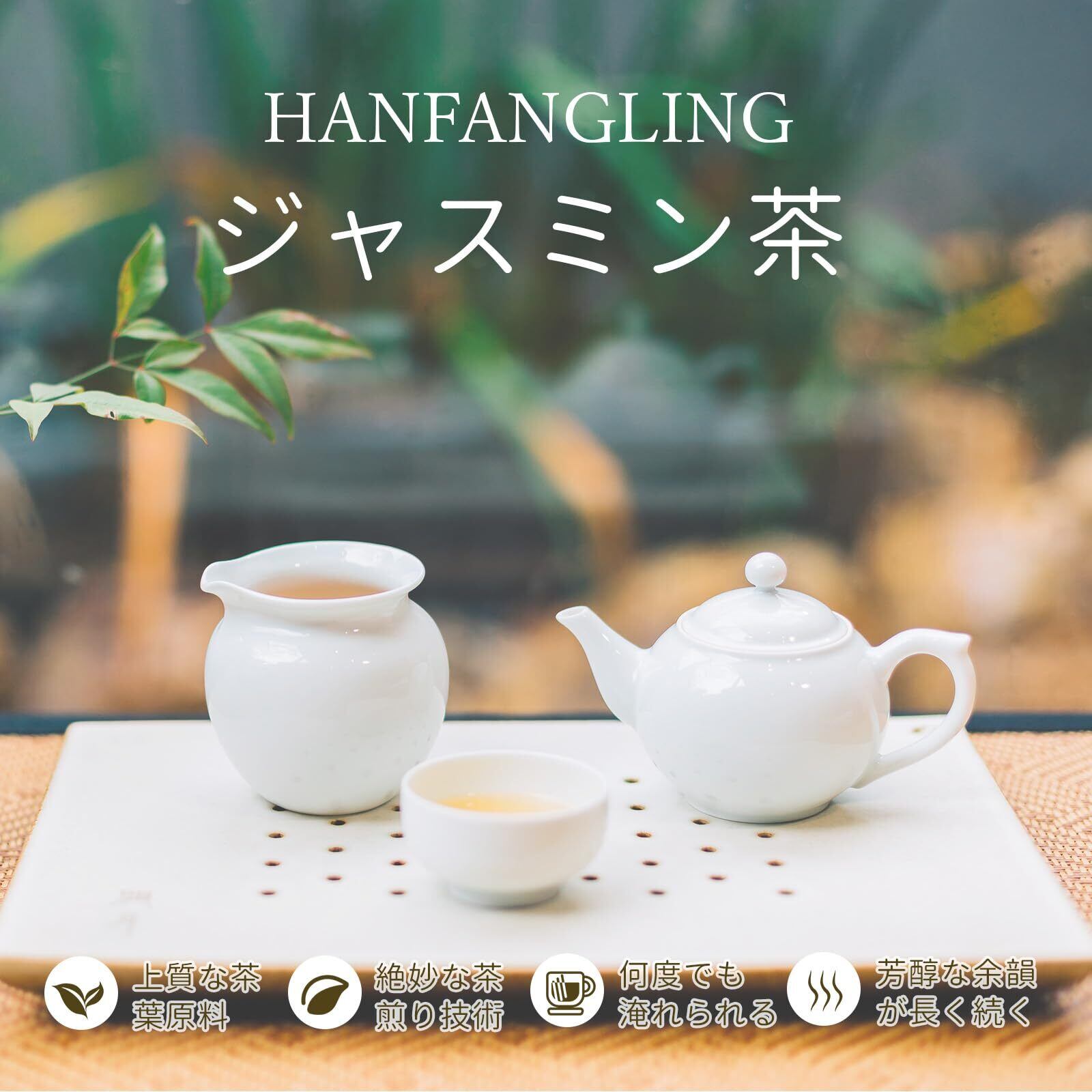 HANFANGLING ジャスミン茶に使用されている茶葉は、中国十大銘茶の一つである緑茶【黄山毛峰】です。 色、香り、味、形すべてが素晴らしく、品質も風味も独特です。このジャスミン 緑茶はジャスミンの芳香成分と緑茶のカテキンなどの有効成分で、心だけでなく、健康生活のサポートをしてくれるジャスミンティーです。