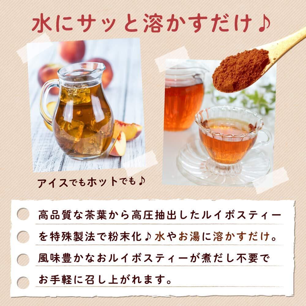 リニューアル南アフリカ産の本場ルイボス粉末を使用。さらに難消化性デキストリン入り【内容量:100g(約200杯分)】 ・チャック付きスタンド袋なので保存が安心
