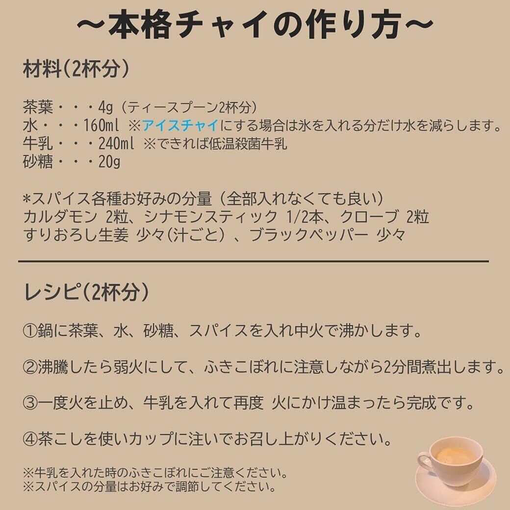 夏場はアイスチャイやアイスティー、冬場はホットチャイやミルクティーでお楽しみください。