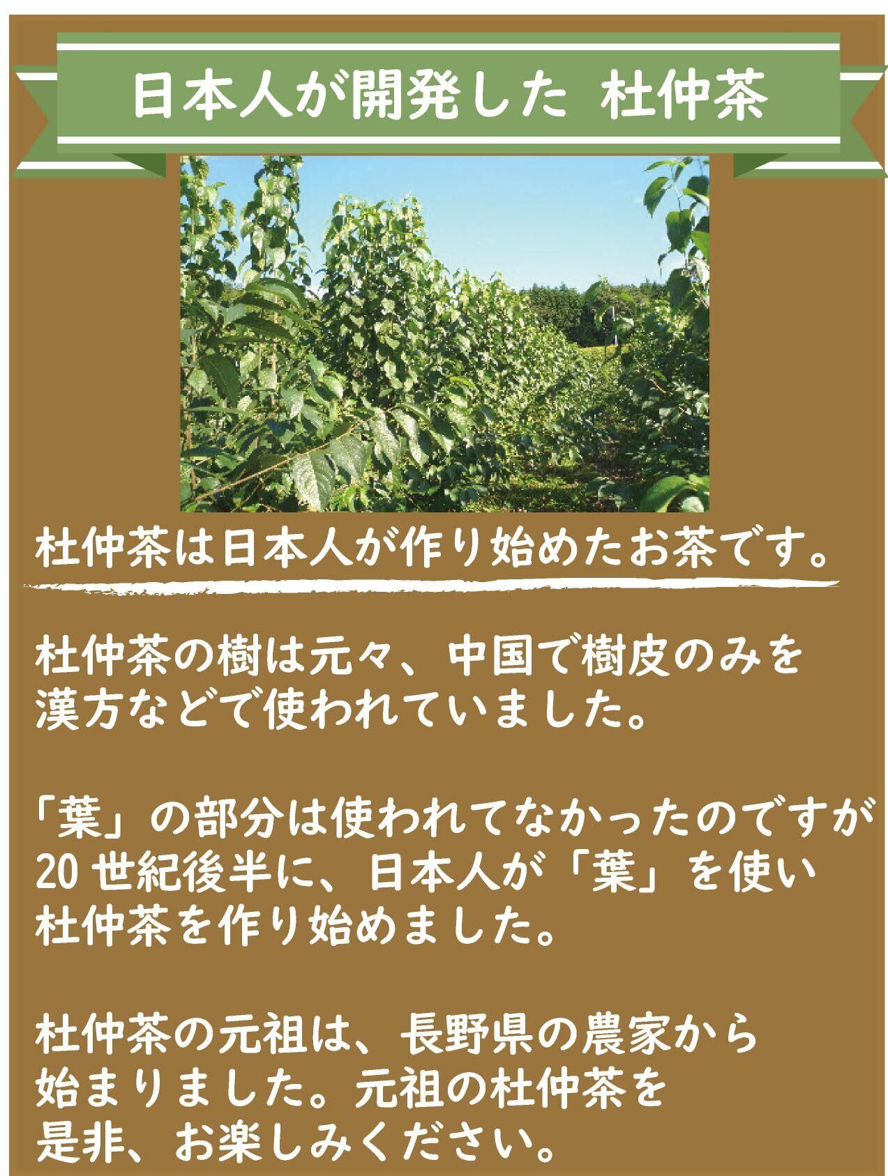 ■国産100% ■長野県産100% ■無農薬栽培の杜仲茶(とちゅうちゃ) ■国産で、日本人が育てた杜仲樹の茶葉を使って、日本人が加工をしているので安心 ■味も日本人に合うように作られています ■加工もすべて国内、国産100%です