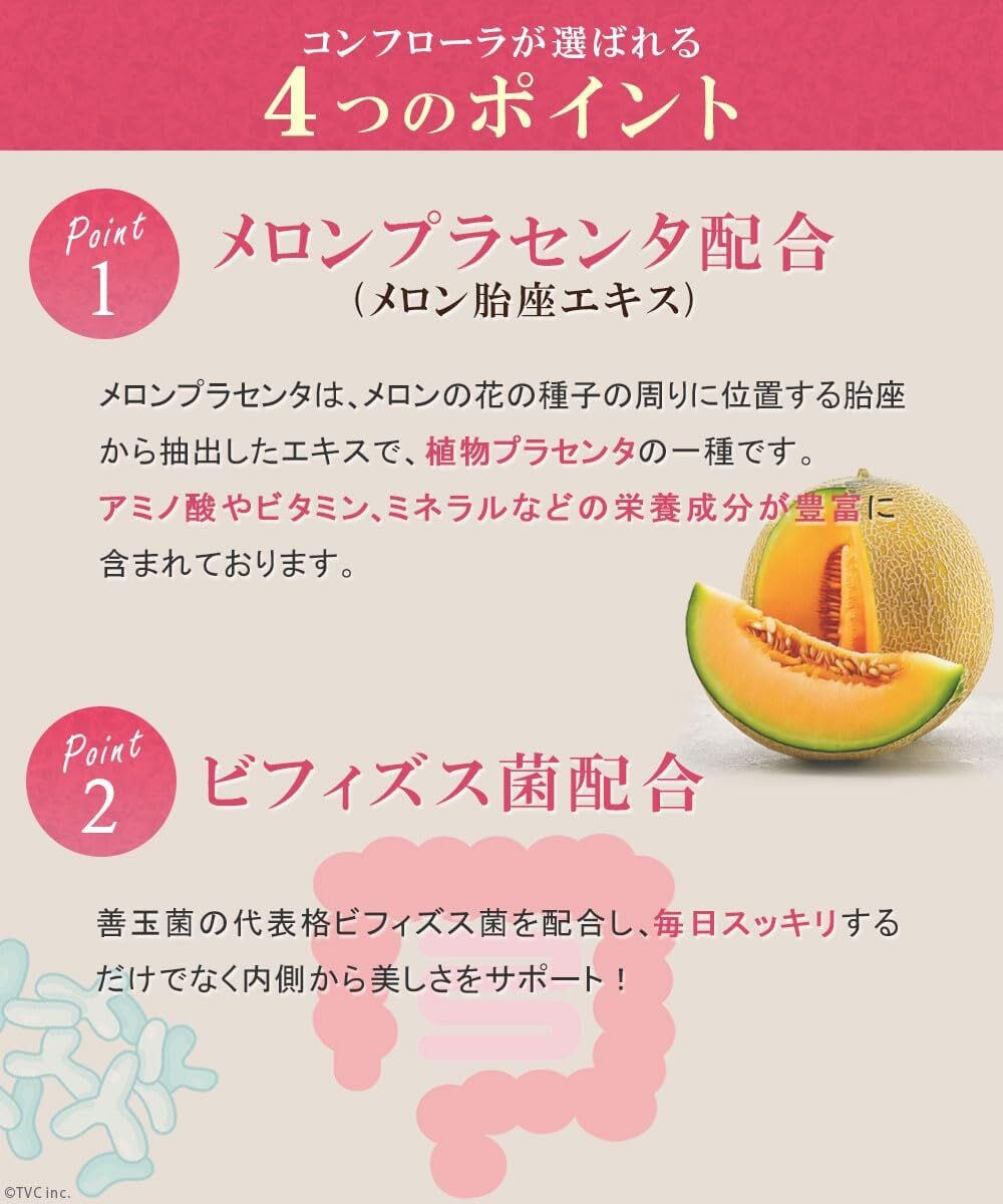 メロン胎座エキス配合 メロンの花の種子の周りにある線状の部分(胎座)から抽出されるエキスで、植物プラセンタの一種です。アミノ酸、ビタミン、ミネラルなどの成分が豊富に含まれており、化粧品などにも配合されています。