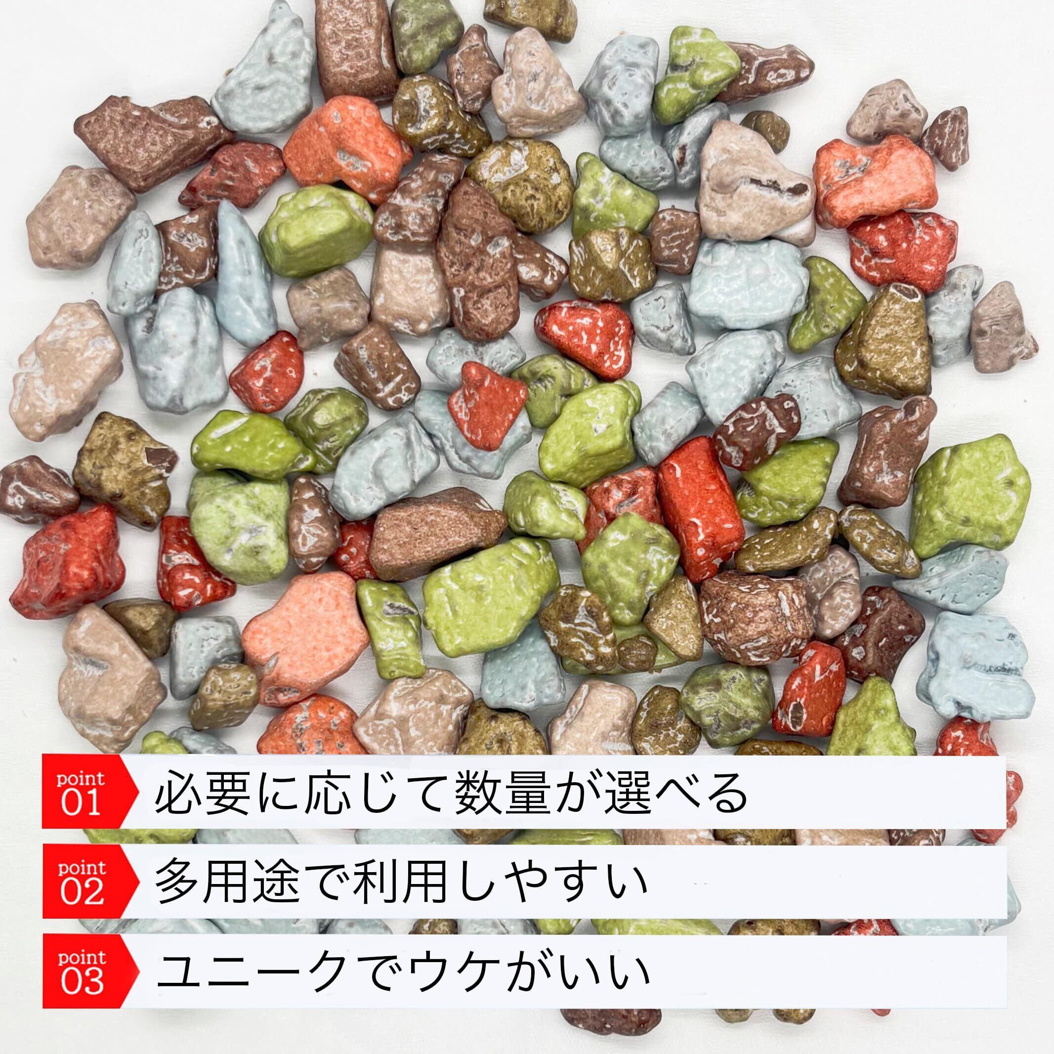 【特徴】︎リアルな見た目と美味しさ:一目で驚き、食べてさらに感動。おしゃれでユニークな見た目が話題性抜群。︎多彩な色と形:自然のロック、ストーンをイメージしたカラフルなデザイン。イベントやデザートの装飾にも最適です。︎カリカリ&とろける食感:外側はシャリシャリ、中は滑らかなミルクチョコレート。