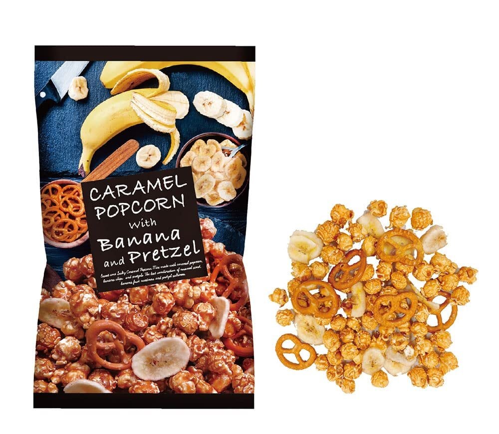 香ばしいキャラメルポップコーンとバナナチップス・ソルトプレッツェル