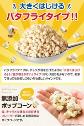 【大きくはじけるバタフライタイプ】バタフライタイプはチョウが羽を広げたように「大きくはじける」&「量が増えやすい」タイプ!はじけ残りも少ないので、お家で作っても失敗しづらいのも嬉しいポイントです。