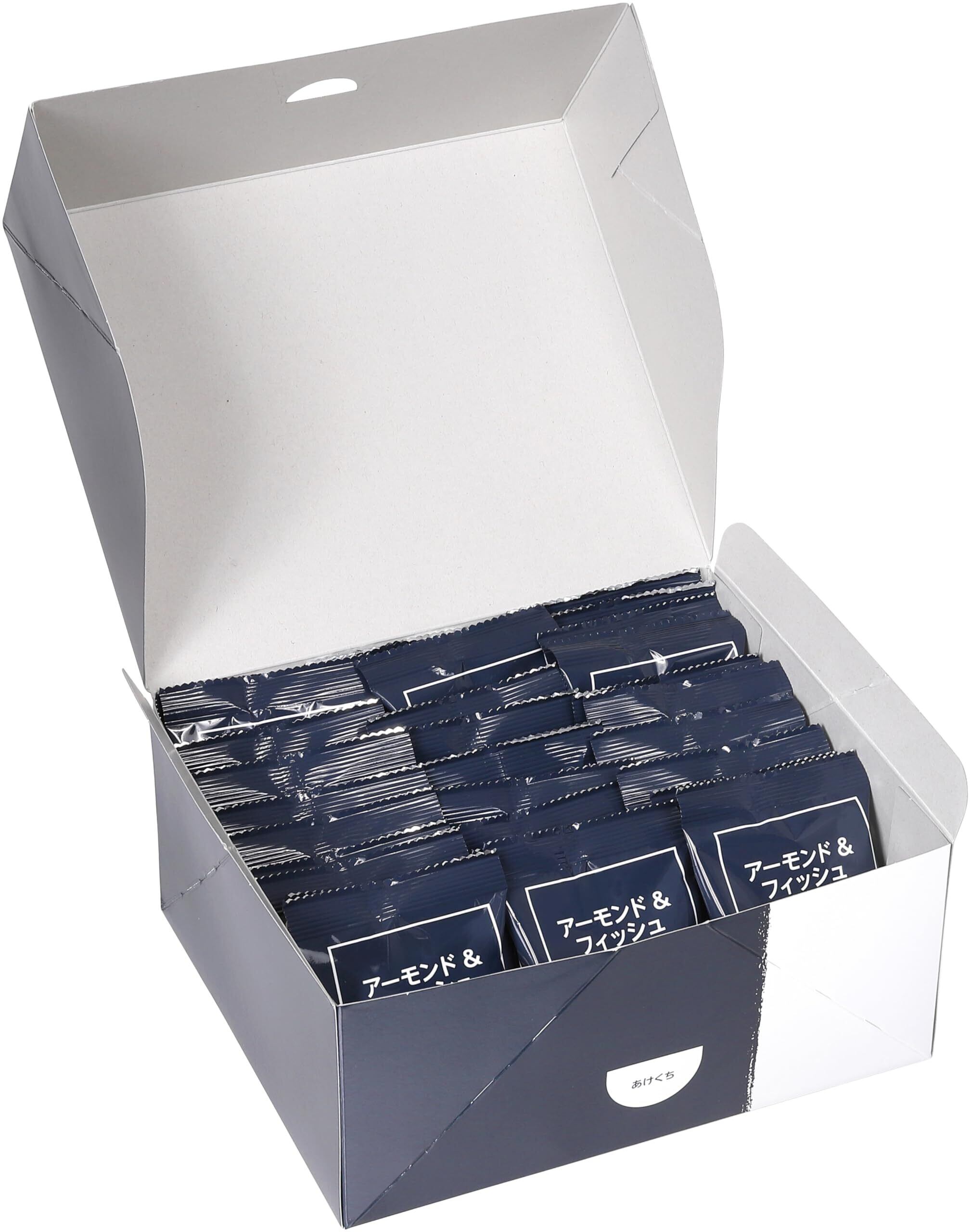 原材料:アーモンド(米国)、味付小魚(煮干し(イワシ、食塩)、砂糖、麦芽糖、ごま)、(一部にアーモンド・ごまを含む) 栄養成分表示個包装1袋(15g)あたり:エネルギー89kcal たんぱく質4.7g 脂質6.9g 炭水化物2.5g 糖質1.5g 食物繊維1.0g 食塩相当量0.1g