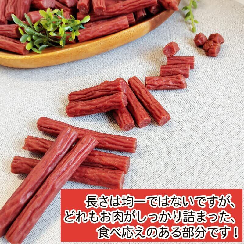 製造過程で出る不揃いのカルパスを、無選別にたっぷり1袋に詰めました。