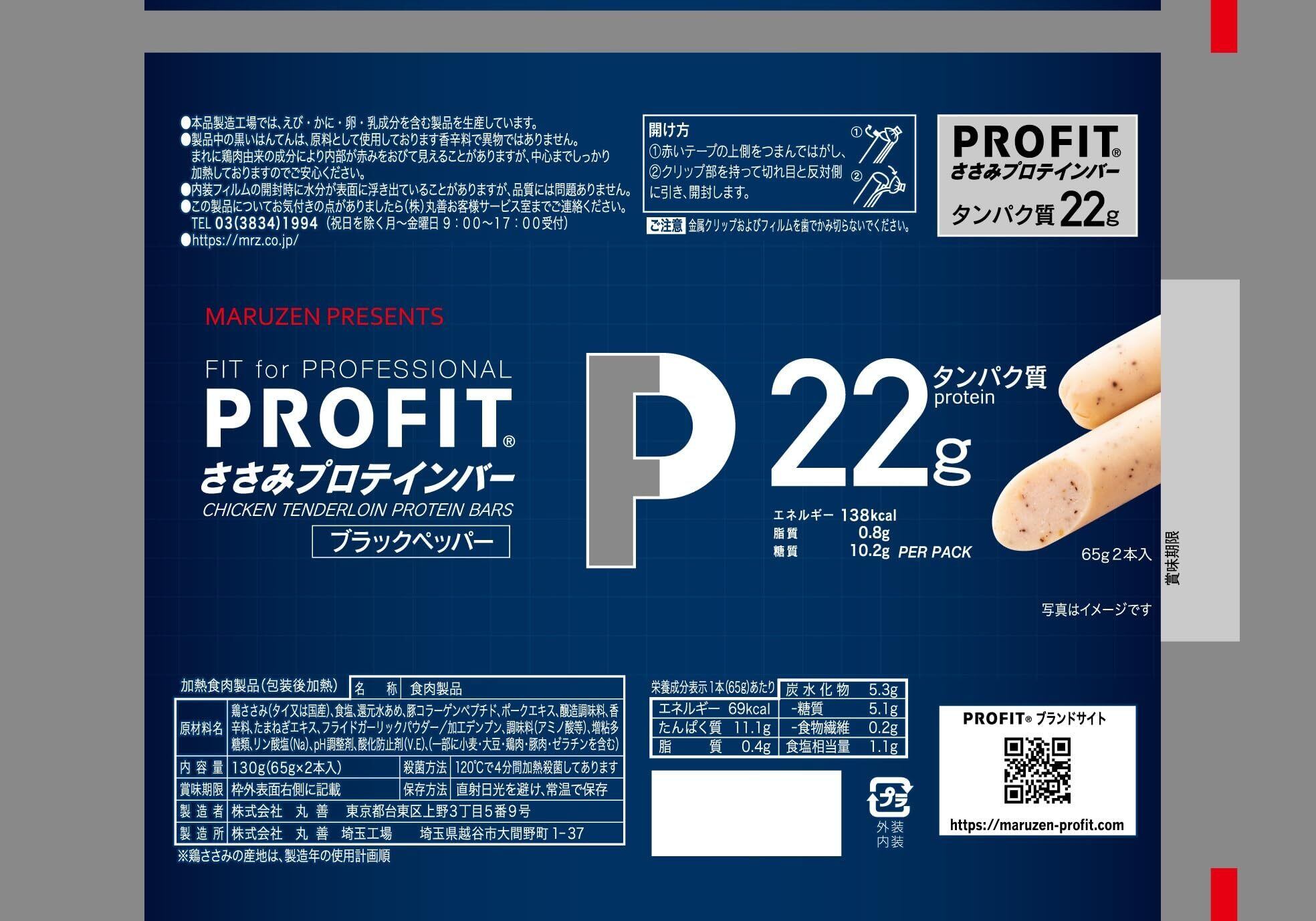 丸善 PROFITささみプロテインバー 新ペッパー 130g×10袋