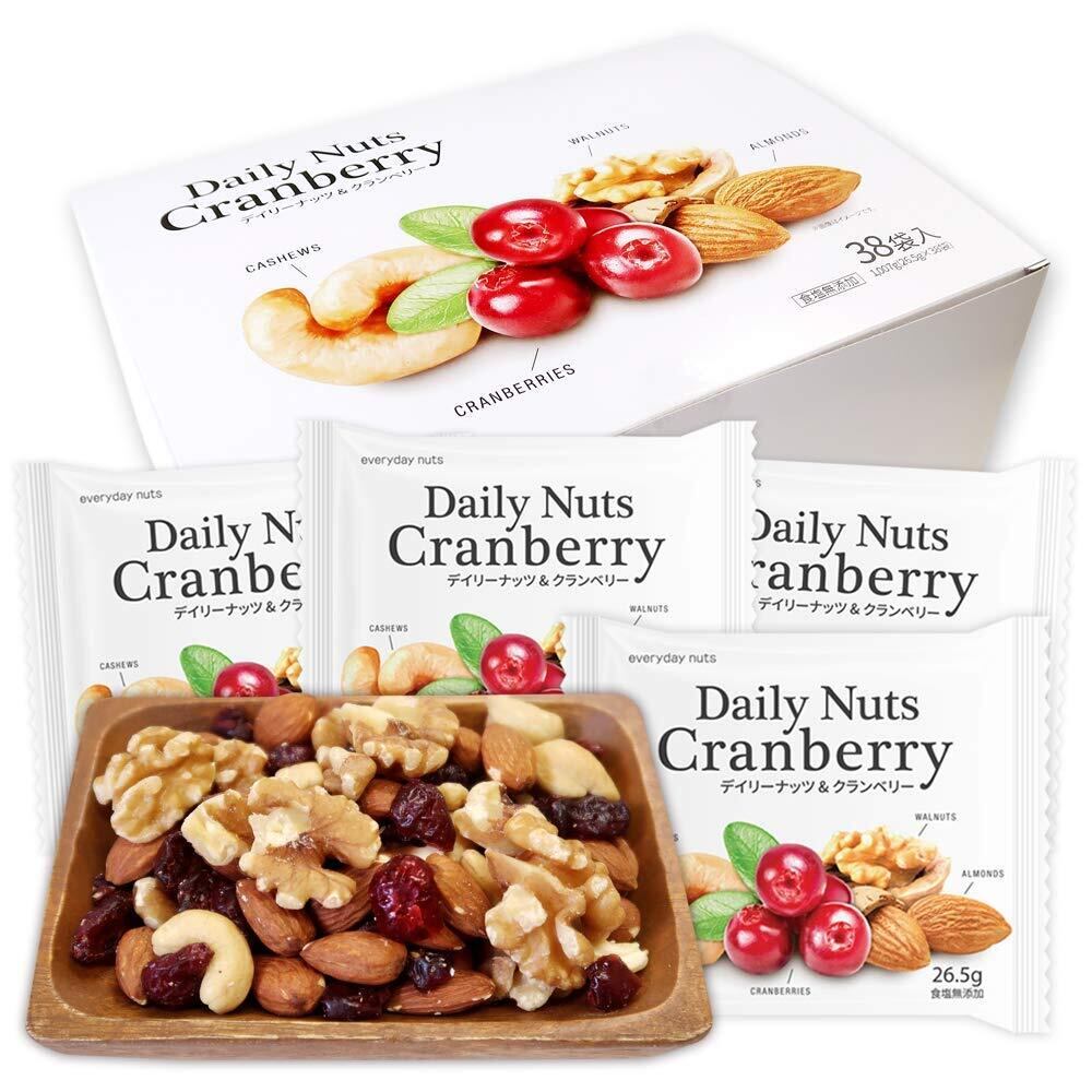 小分け ミックスナッツ&クランベリー 1007g (26.5gx38袋) 個包装 Daily nuts Cranberry (素焼き アーモンド くるみ 素焼き カシューナッツ ドライクランベリー) 小袋 産地直輸入 箱入り 食塩不使用 保存料不使用 防災食品 非常食 保存食 備蓄食 おやつ おつまみ