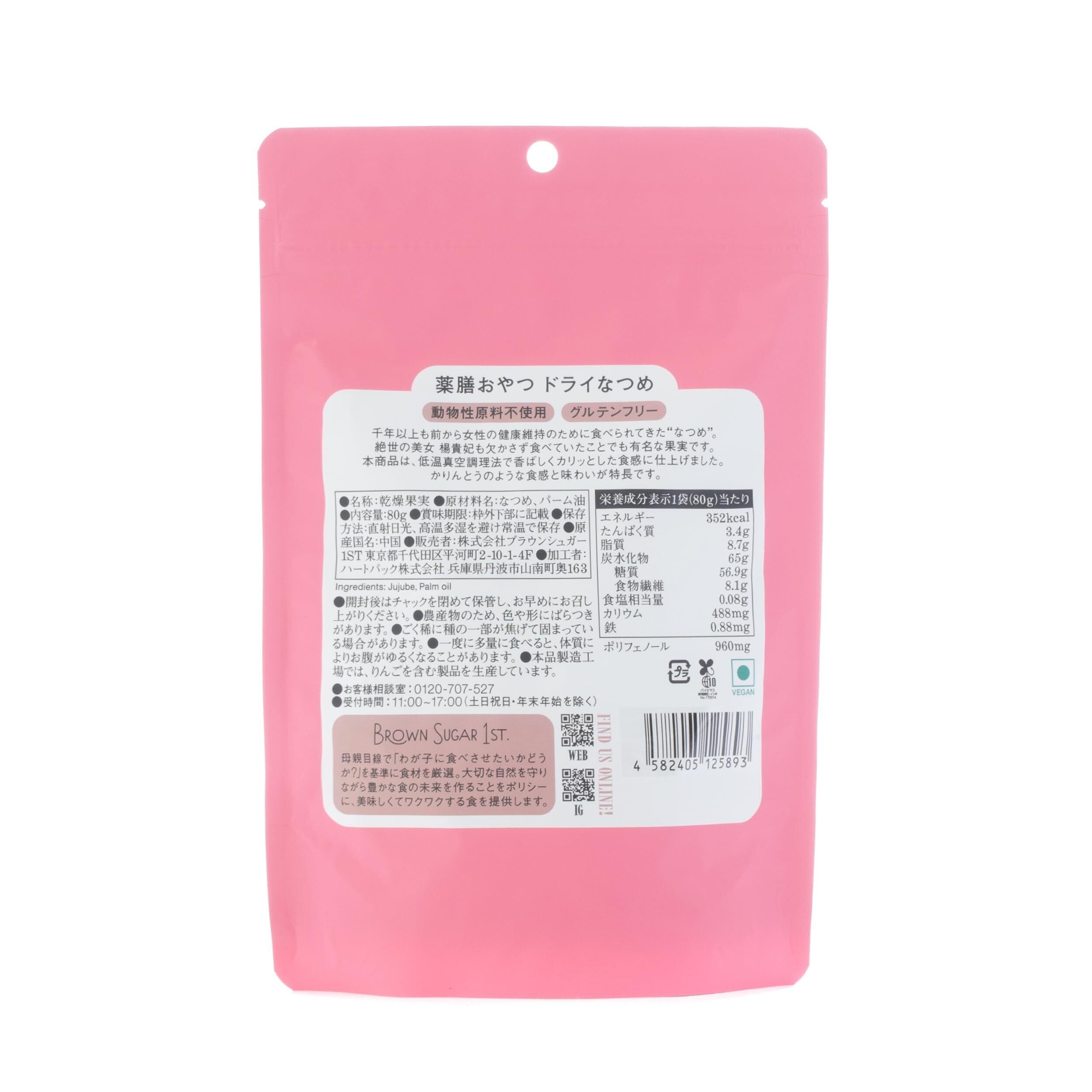 薬膳おやつ ドライなつめ(80g)(ギルトフリー グルテンフリー 白砂糖不使用 香料不使用 着色料不使用 保存料不使用 薬膳 スナック)ブラウンシュガーファースト
