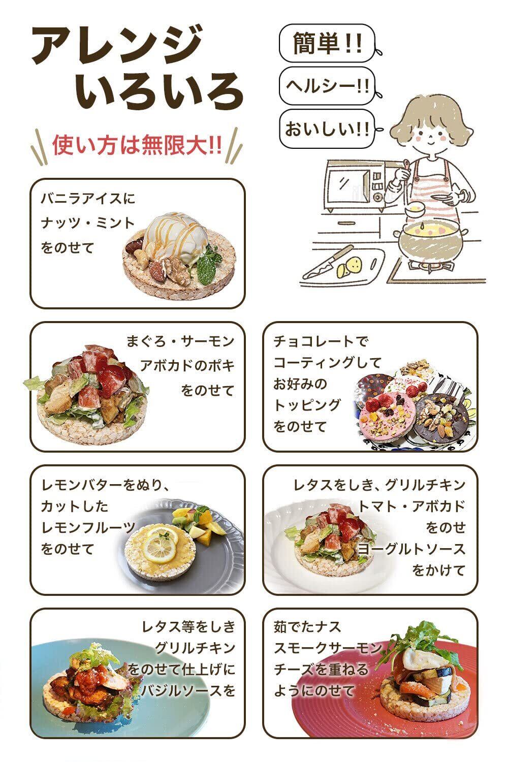 【使い方は無限大!!】直径10㎝と大き目なので、オンザ玄米の上にお肉やお魚、チーズや生ハム、野菜などをトッピングしたり、フルーツをのせてもgood!もちろん、そのまま食べても美味しいです。また、包丁で簡単にカット出来るので、お好みのサイズにカットする事も出来ます。普段使いから、忙しい朝の朝食にも強い味方!ちょっとしたホームパーティーや特別な日にも、ワンランクアップの1品に。