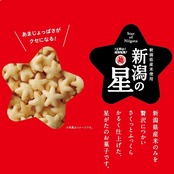 新潟県産米を100%使用したさくっとかるくてやさしいくちどけのお菓子です。恵まれた環境ではぐくまれた新潟県産米を贅沢に使用し、隠し味に原木しいたけパウダーを使った味わい深い砂糖しょうゆ味に仕上げました。