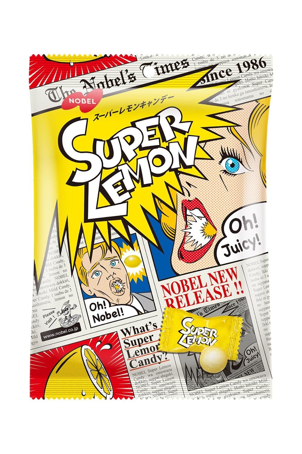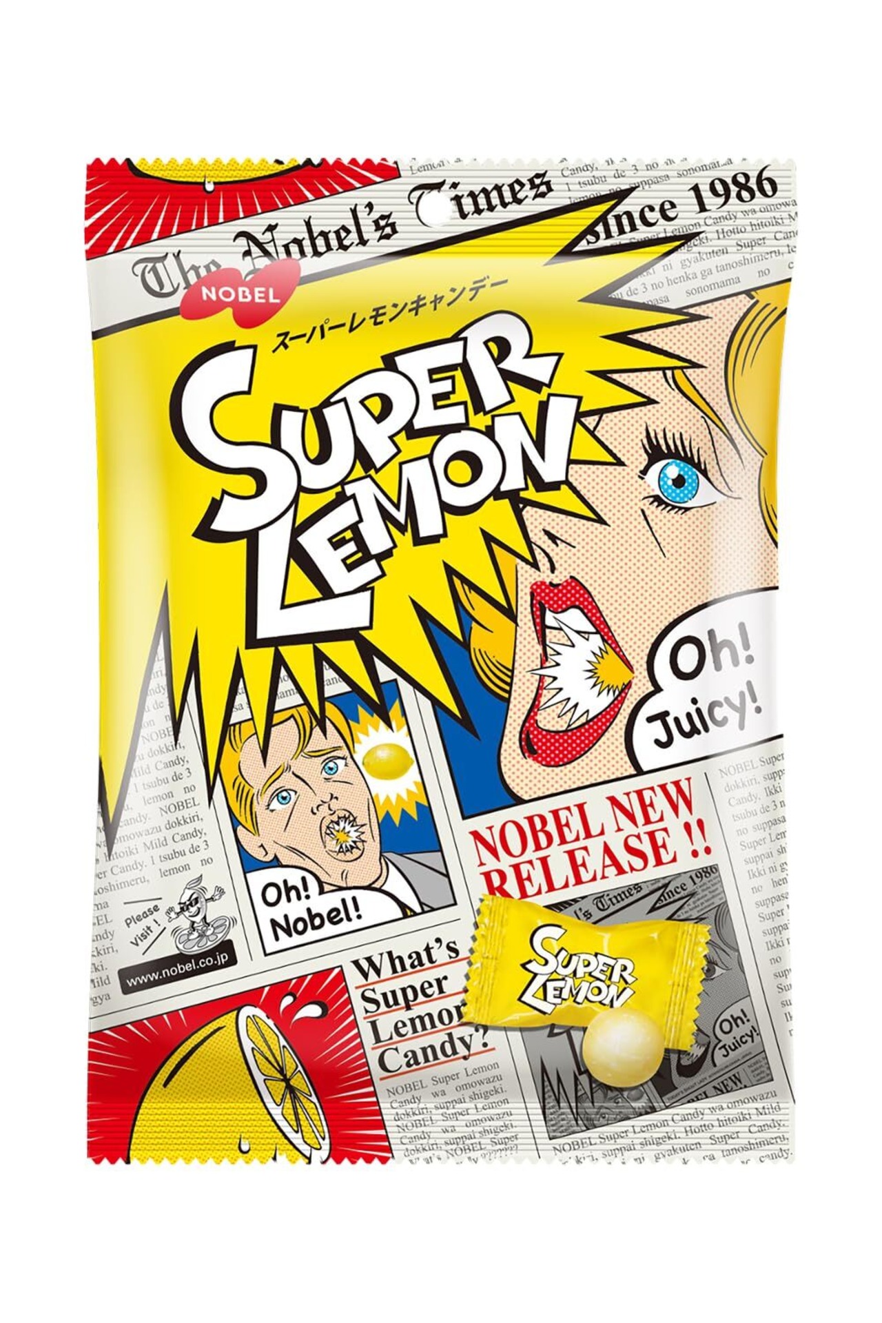 強烈な酸味パウダーと2層の異なるレモン味の変化が楽しめるキャンデー。1986年発売し、大ヒットしたあの「スーパーレモン」が復活しました。