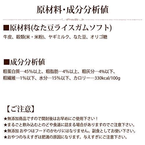 【牛皮を細かく砕き歯に優しい】従来の牛皮を使用したガムは硬すぎることもあり、子犬や老犬が食べ辛いため なた豆ライスガムソフトでは、牛皮を砕いてから再度形成することでサクサクとした食感と適度な硬さを保ち、 子犬から老犬までしっかりと噛みながら楽しめる仕上がりになっています。