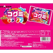 水飴(国内製造)、砂糖、果糖ぶどう糖液糖、濃縮果汁(りんご、グレープ、レモン、デーツ)、ゼラチン/酸味料、香料、光沢剤、着色料(カラメル、紫ニンジン、クチナシ)、マンニトール、(一部にりんご・ゼラチンを含む)