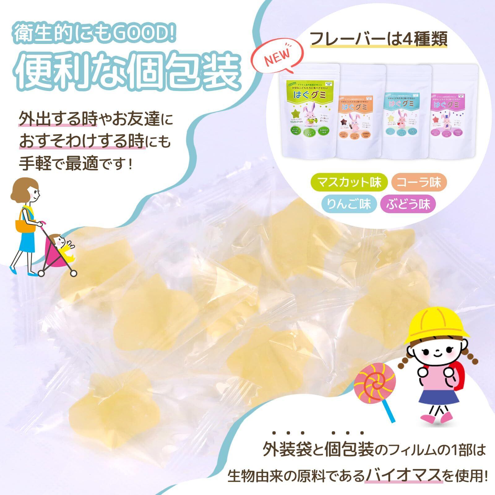 【噛みごごちのよい食感】少し硬めに作られているグミなので、よく噛むトレーニングとして最適。噛むことは「顎の発育」「虫歯予防」「歯周病予防」「口臭予防」になります。