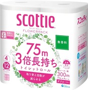 スコッティ フラワーパック 3倍長持ち トイレット4ロール 75mダブル 無香料 [×1個]
