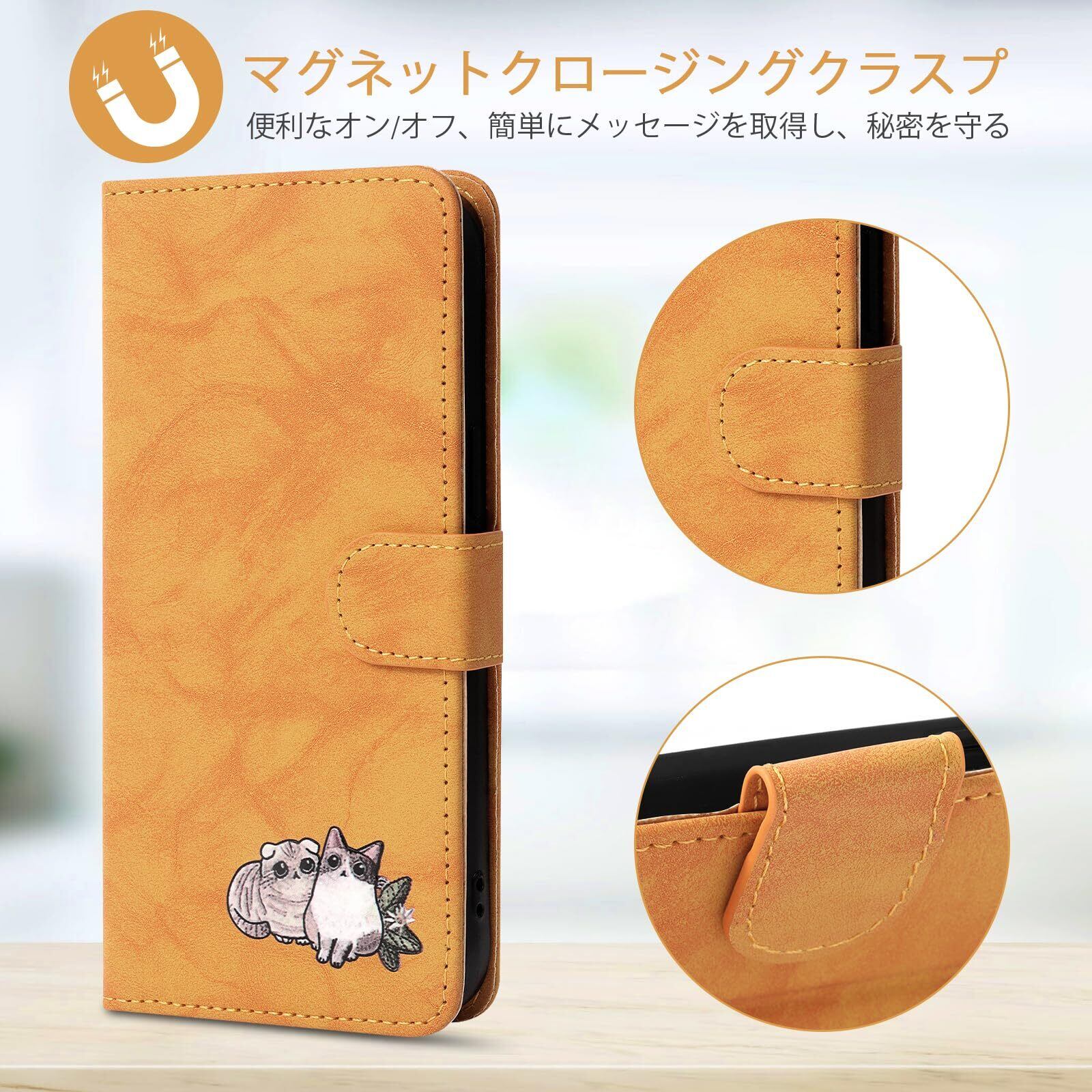 KW-LINK AQUOS wish3 ケース 手帳型 au A302SH ケース docomo SH-53D カバー 可愛い 猫柄 SH-M25 携帯カバー 落ち着いた色 薄型 軽量 アクオス ウィッシュ3 ケース 手帳型 カード収納 肌感レザー SHARP AQUOS wish3 スマホケース スタンド機能 マグネット式 耐衝撃(オレンジ)