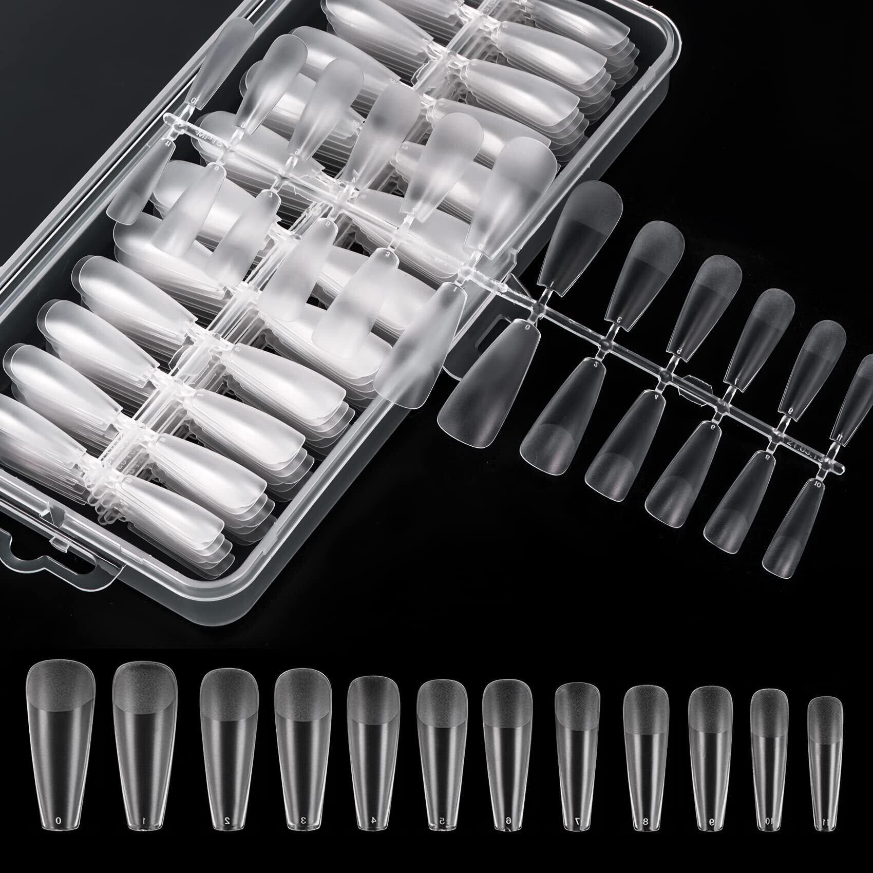 大容量で実用:バレリーナ型ネイルチップセットです。12種類のサイズで様々な自爪のサイズに対応可能、合計240枚入り。付け爪、練習用どちらにもお使いいただけます。
