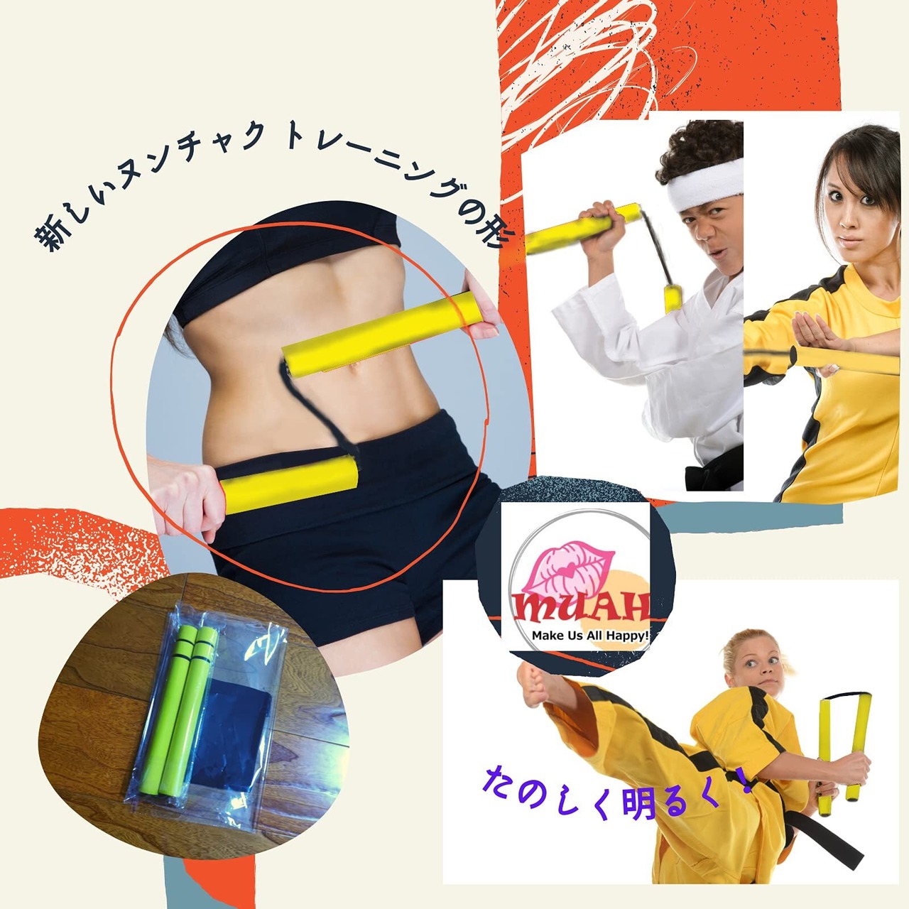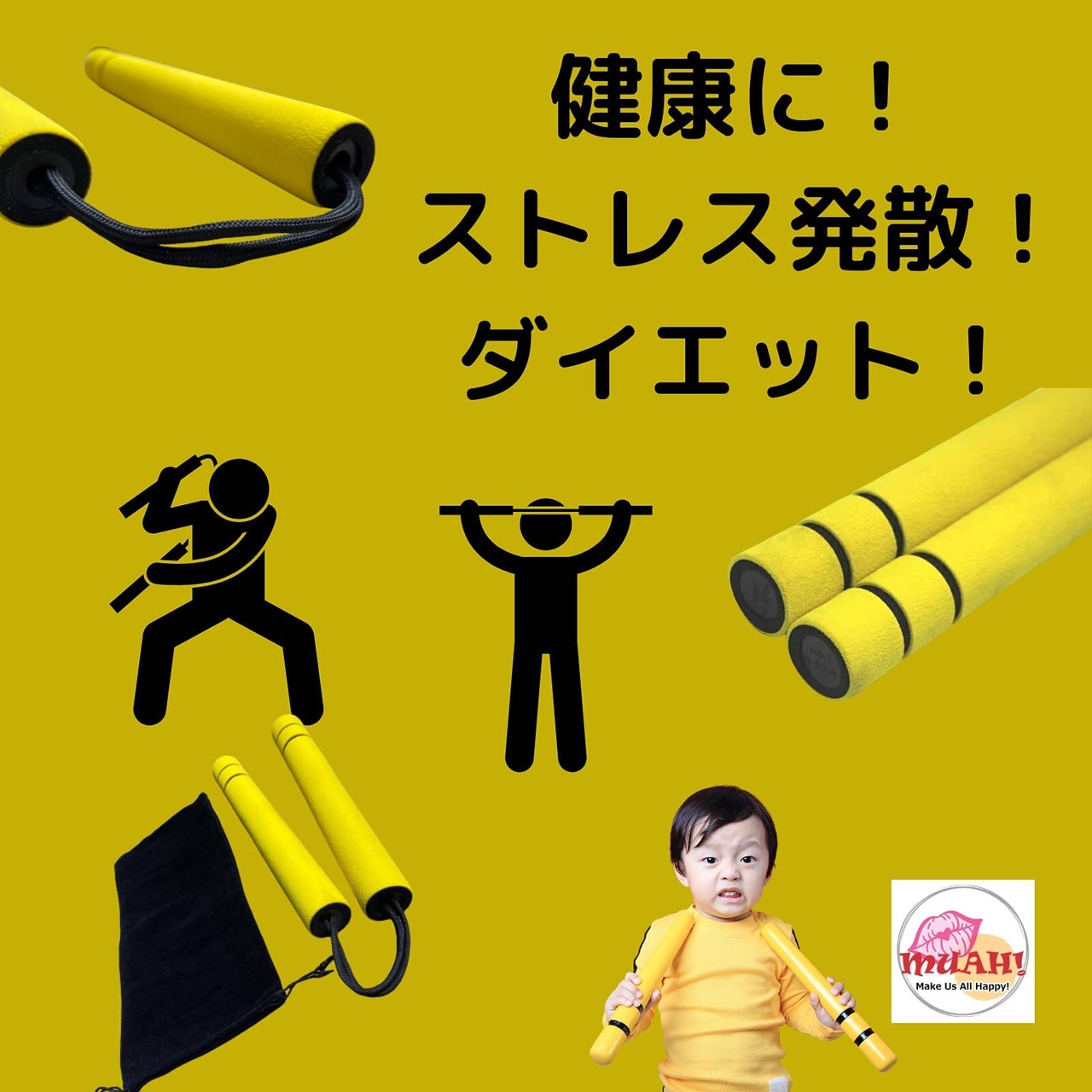 MUAH! ヌンチャク ヌントレ ダイエット 安全 軽い ウレタン 製 スポンジ 適度な 重さ 重量 初心者 練習 用 舞台 道具 黒色 黄色 ブラック イエロー 痛くない