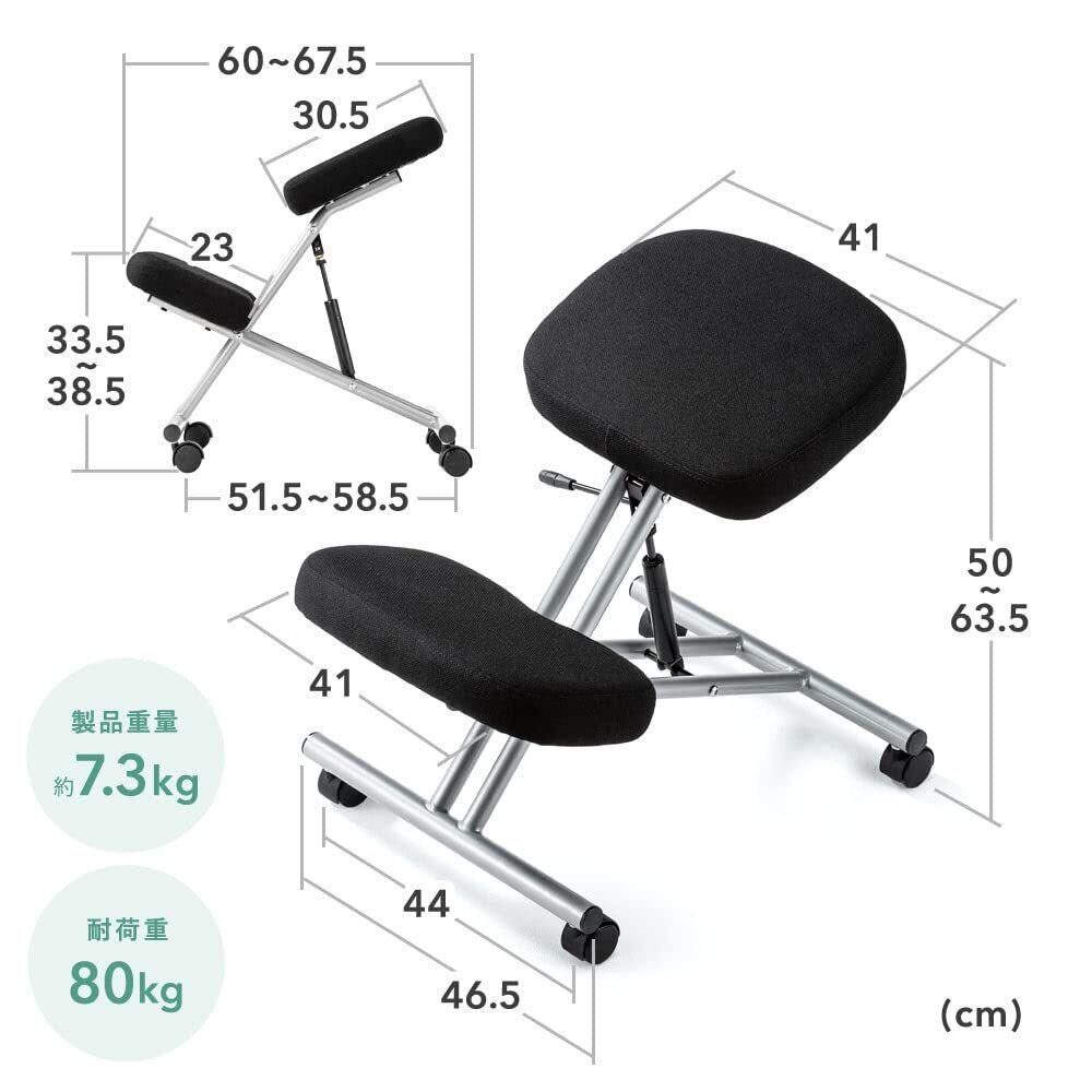腰に負担をかけにくく、きれいな姿勢がとれるよう設計されています。体型に応じて無段階高さ調節のできるガス圧昇降タイプで、男性から女性まで幅広く使用可能です。