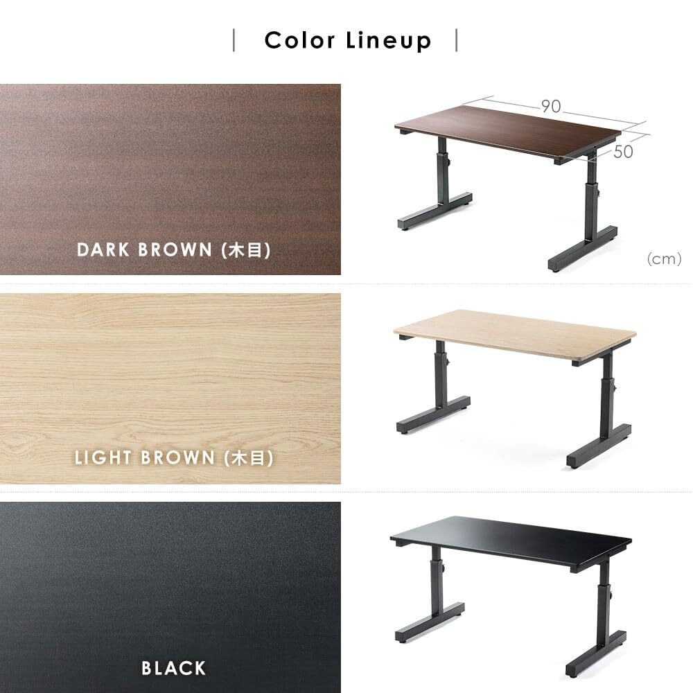イーサプライ ローデスク 高さ調整 4段階 38~50cm 幅90cm 奥行50cm 木製 テレワーク 昇降式 ゲーミング パソコン ダークブラウン EEX-DKL02DBR