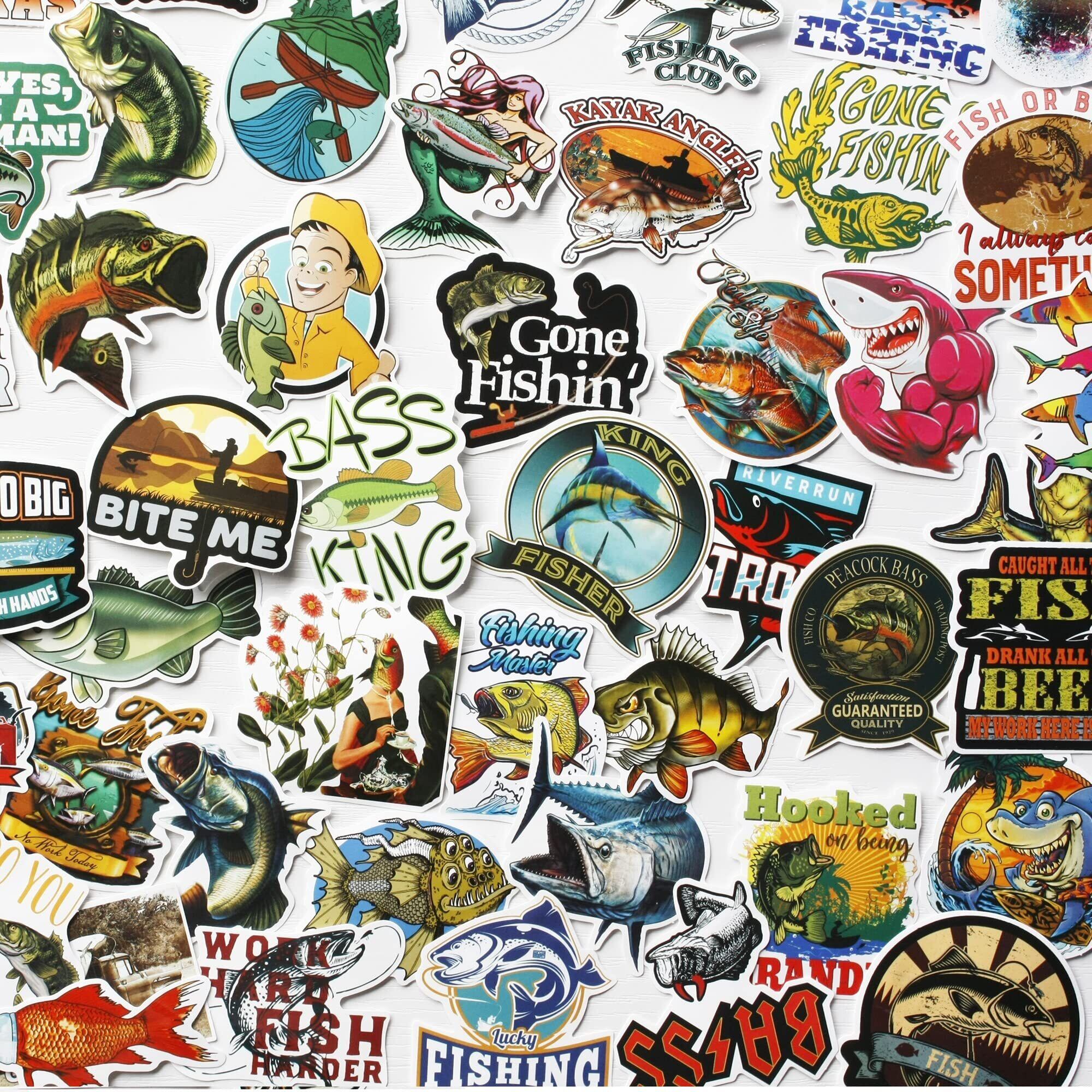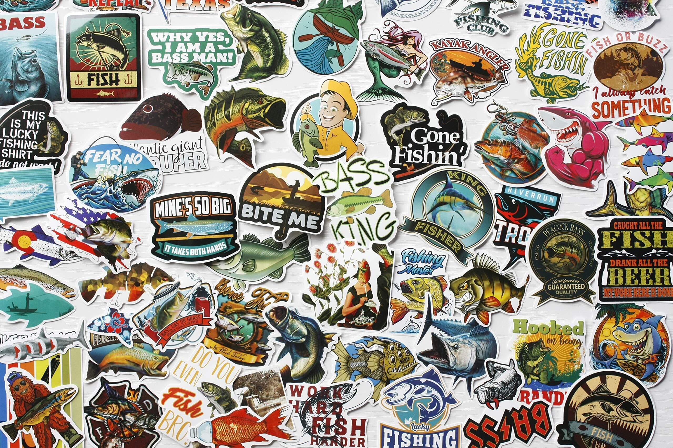 65枚 海釣りシール 魚クーラーボックス ステッカー バス釣りデカール 釣り道具ラベル オモシロ魚釣りステッカー 魚のステッカー