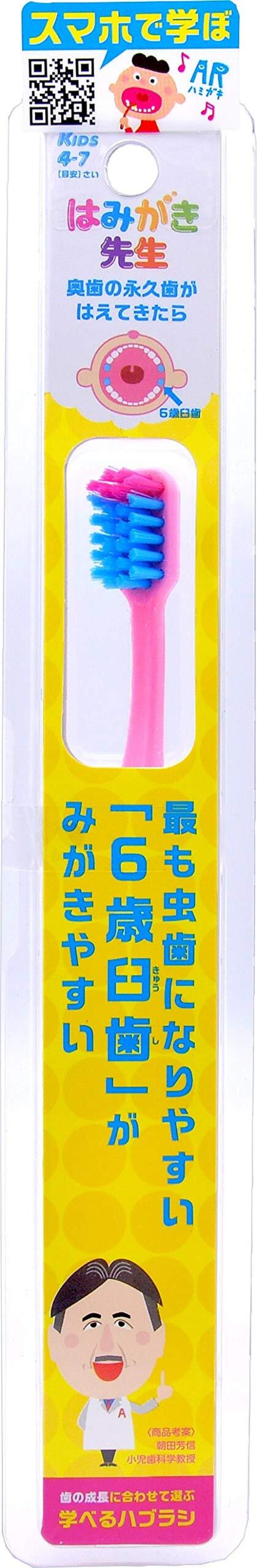 オカムラ はみがき先生 キッズ歯ブラシ 6歳臼歯用 奥歯の永久歯が生えてきたら 4本セット(各色2本づつ)