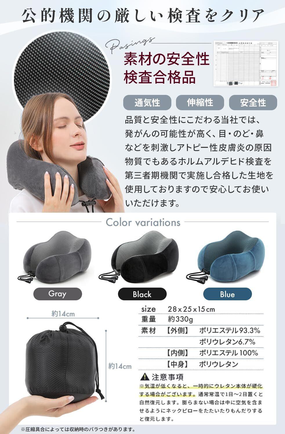 【 】当社ではお客様の満足を第一に考え製品の改良と政策を行っております。「イメージと違った」「サイズが合わなかった」場合、商品に不具合があった場合は最大90日間の返品 返金対応させていただきます。【カラー】グレー,ブラック, ブルー 【サイズ】収納時約14cm×14cm。 ※圧縮具合によってバラツキはございます。【重量】約330g 【素材】(外側) ポリエステル93.3%(ビロードベロア加工) ポリウレタン6.7% (内側)ポリエステル100% 【付属品】簡易アイマスク 簡易耳栓
