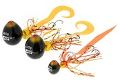 小さい喰わせ玉が、水流でアクションし、音や派手な色合いで喰い気を誘う新しいタイプのタイラバ!