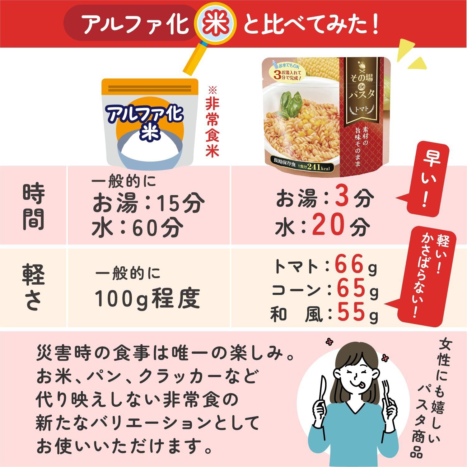【 非常食 5年保存 】その場de パスタ 9食セット 3種×各3食 |トマト コーン 和風 お湯 3分 国産 簡単調理 防災 備蓄 災害対策 常温保存 容器不要 スプーン不要 食料 登山 アウトドア