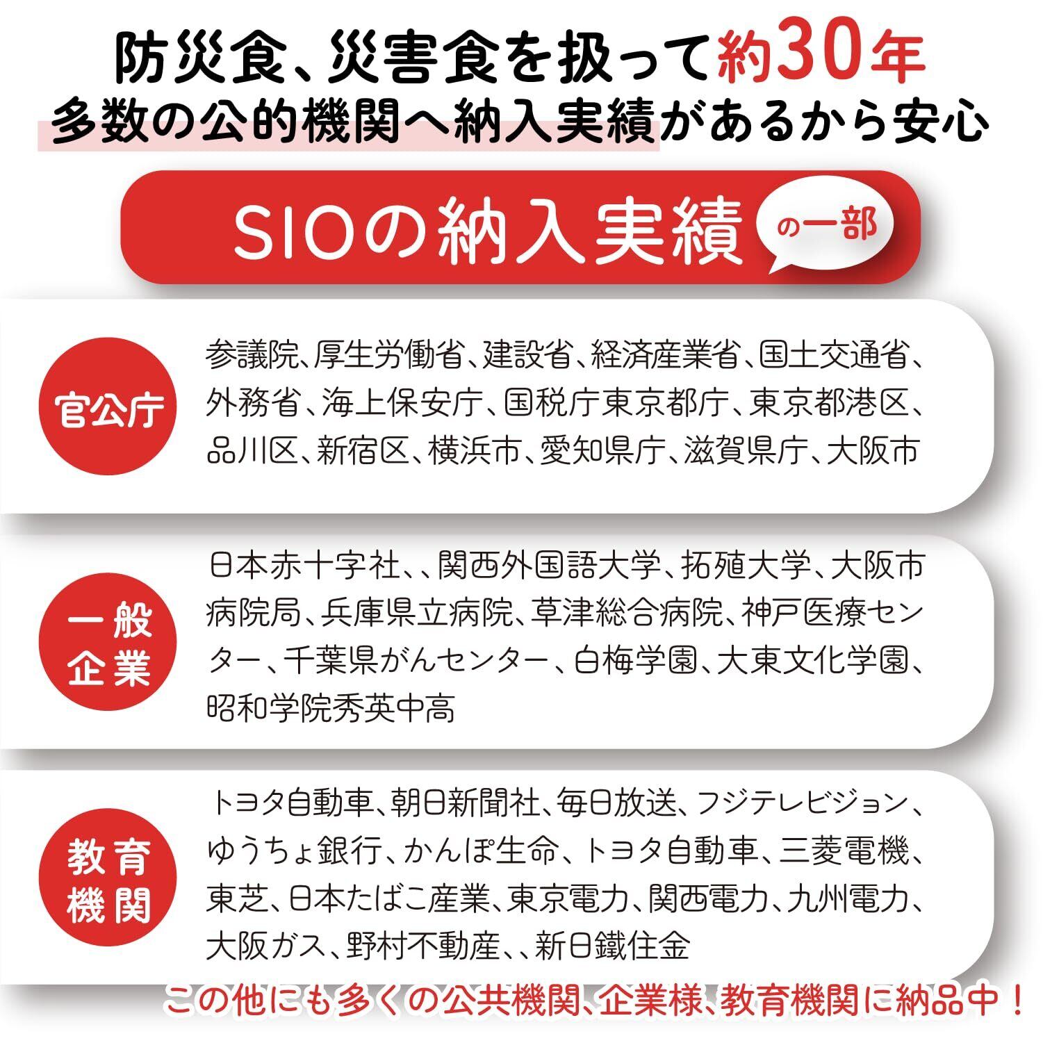 官公庁や大手企業、学校、病院など2,000施設以上への納入実績があり、大変ご好評いただいております。※当社製品の全体実績 その場deパスタ トマトは災害食大賞2022 お米・炭水化物部門にて【優秀賞】を獲得しました!
