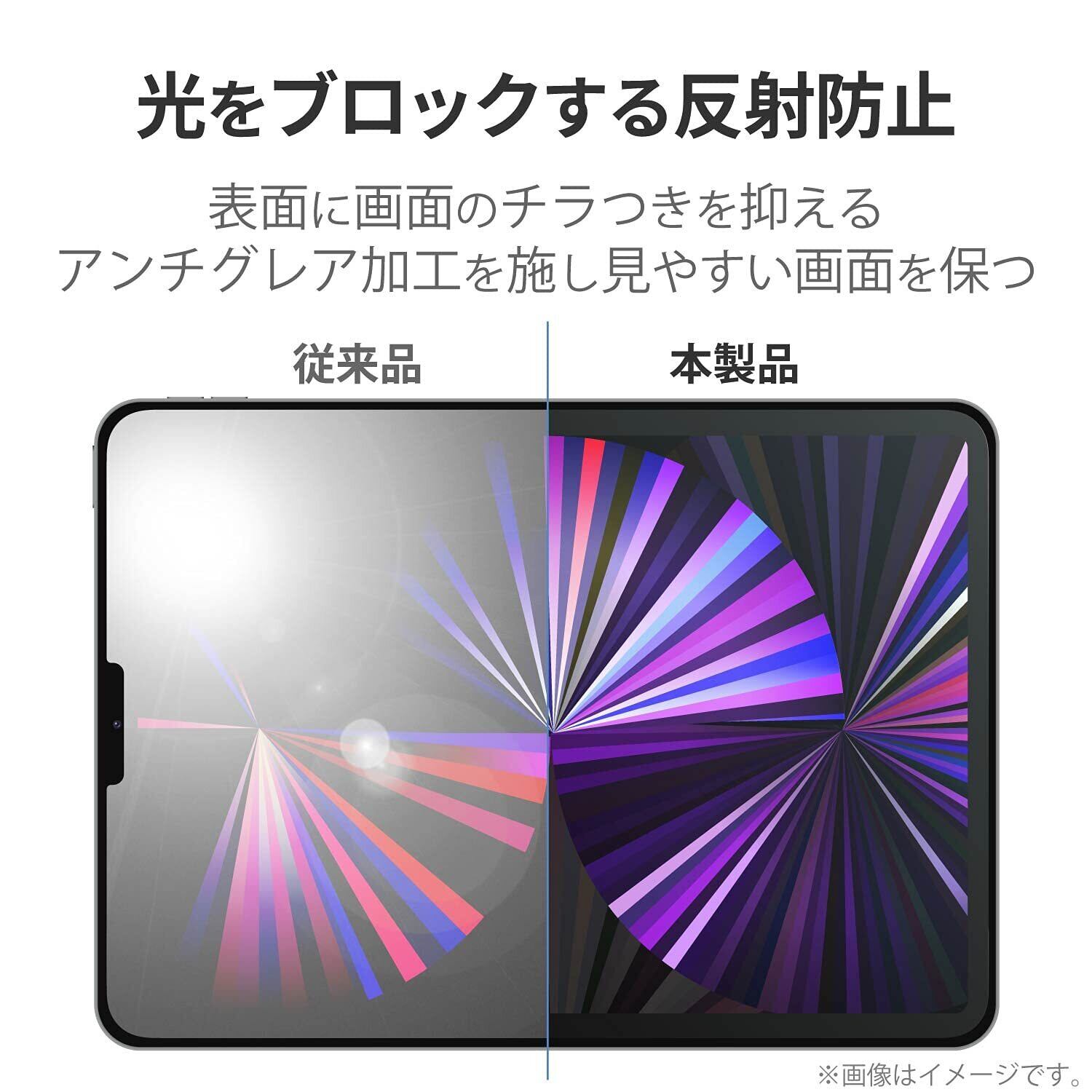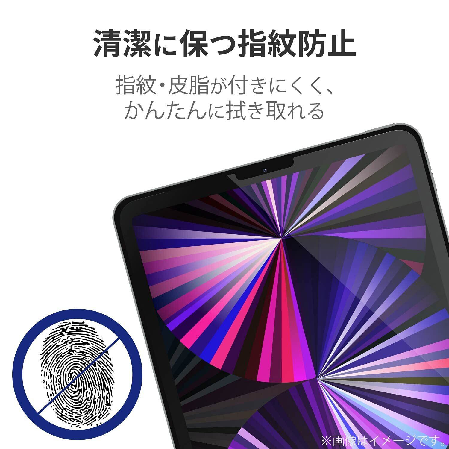 iPad Pro 11インチ (第4世代)(2022年モデル)、iPad Air (第5世代)(2022年モデル)、iPad Pro 11インチ (第3世代)(2021年モデル)、iPad Air (第4世代)(2020年モデル)、iPad Pro 11インチ (第2世代)(2020年モデル)、iPad Pro 11インチ (2018年モデル)の液晶画面を傷や汚れから守る、指紋防止・反射防止タイプの液晶保護フィルムです。