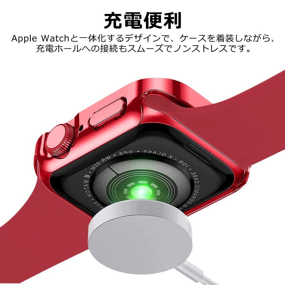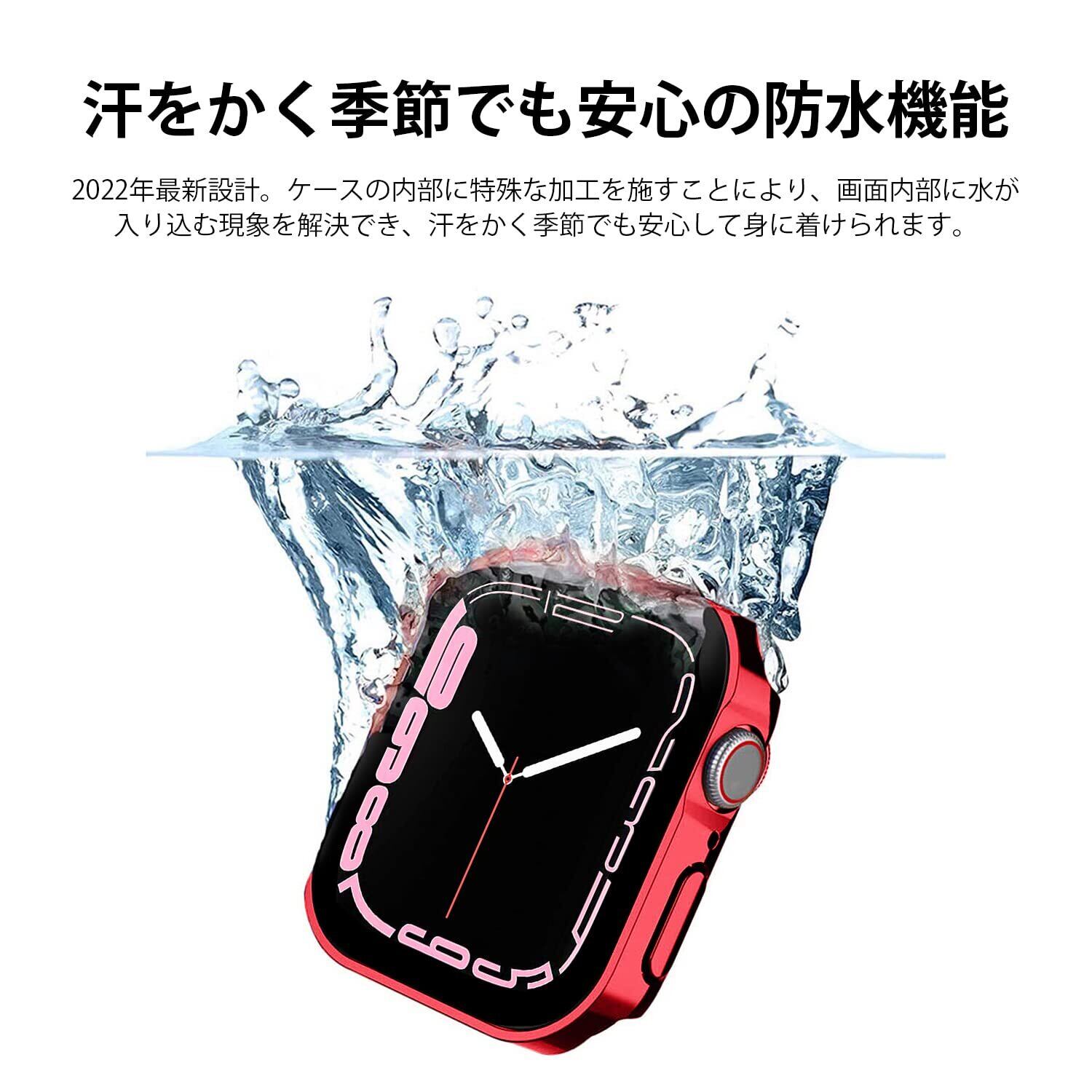TALENANA for Apple Watch防水ケース 45mm 44mm 41mm 40mmアップルウォッチ 用 保護ケース 強化ガラスフィルム Series 7/6/SE/5/4 一体型 3D直角エッジ新デザイン メッキ加工 PC素材 高タッチ感度 全面保護 衝撃吸収 取付簡単 (Series 6/SE/5/4,40mm,レッド)