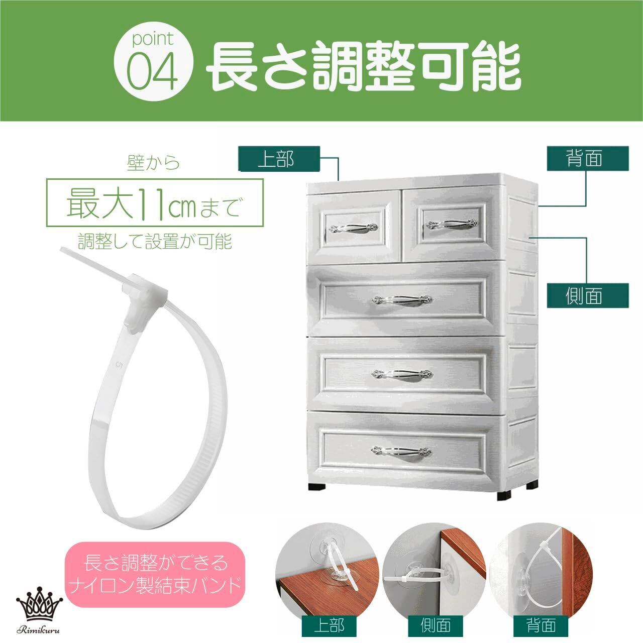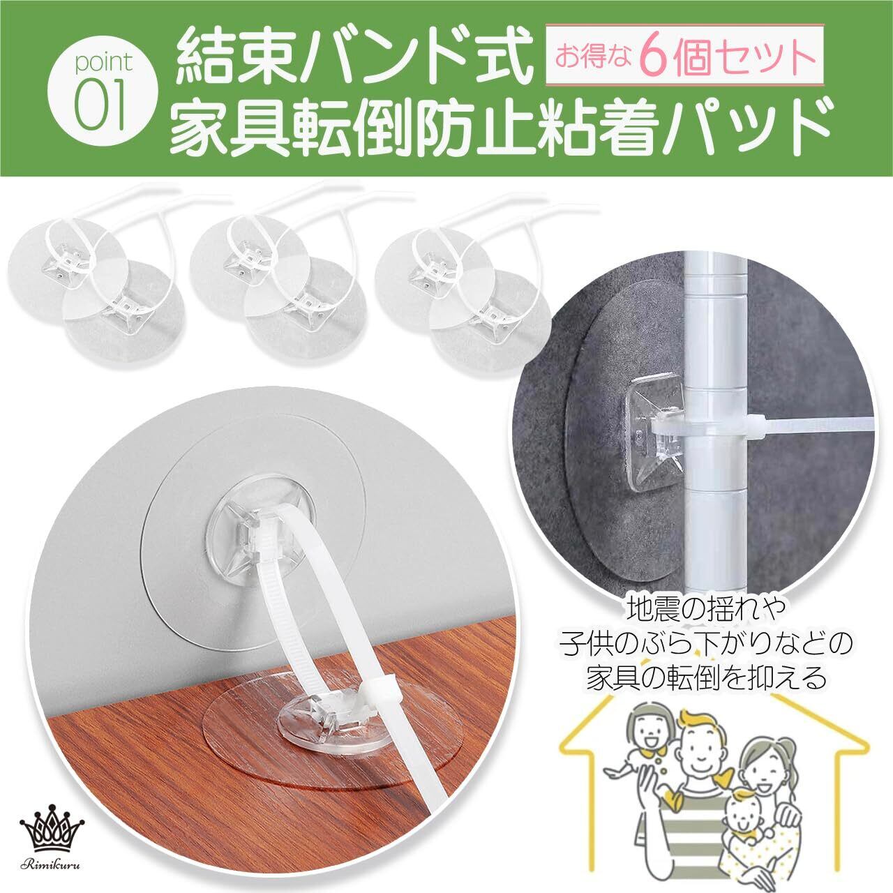 Rimikuru 家具 転倒防止 ストッパー ストラップ 結束バンド 粘着テープ 穴あけ不要 固定 転倒予防 耐震 (6個セット)
