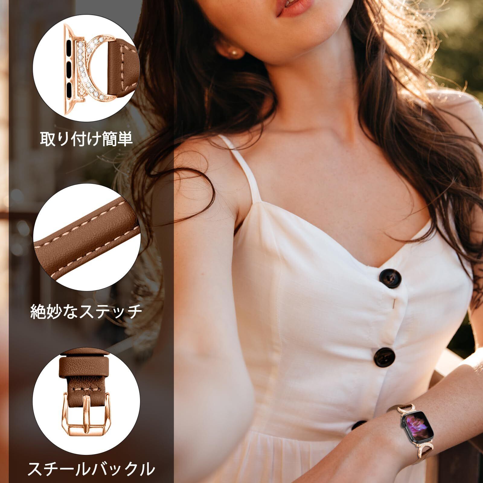 [HeeNia] Apple Watch 対応 レザーバンド(38mm/40mm/41mm/42mm) Apple Watch Series 10 42mm/iWatch Series 9/8/7/6/5/4/3/2/1/SE バンド 革 ダイヤモンド ストラップ スポーツバンド iWatch ベルト 用時計ベルト (ブラウン)