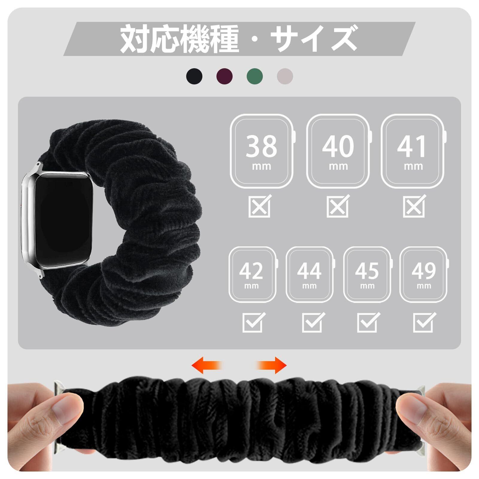【対応機種・サイズ】 新しいシュシュバンドは女性のために特別にデザインされています。鮮やかな色と上品なスタイルで、どんな服装にもマッチします。Apple Watch Series 10 46mm /9/8/7/6/5/4/3/2/1/SE/SE 2/Ultra 2/Ultra 全機種に対応できます。伸縮性が非常によく、ほとんどの人の手首サイズに適しています。