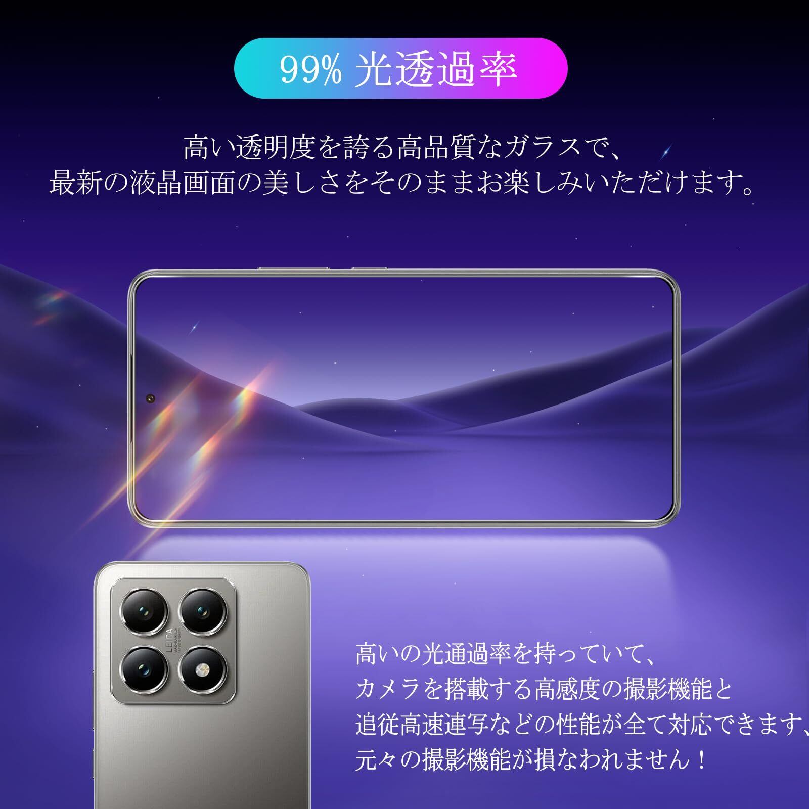 【極薄・超クリア・感度が高い】 シャオミ 14T Pro 保護フィルムは、通常の液晶保護フィルムよりも高級なガラスを採用して作られており、高精細で透明な保護フィルムが最高な解像度があることを確保し、透明度も高くて99%に達し、高透明度で高精細な見る体験を現実しました。そして厚さが0.26mmの極薄強化ガラススクリーンプロテクターは最高レベルで画面保護を実施しながら、本来の感度と触感を保持して、優れた使用体験をもたらします。