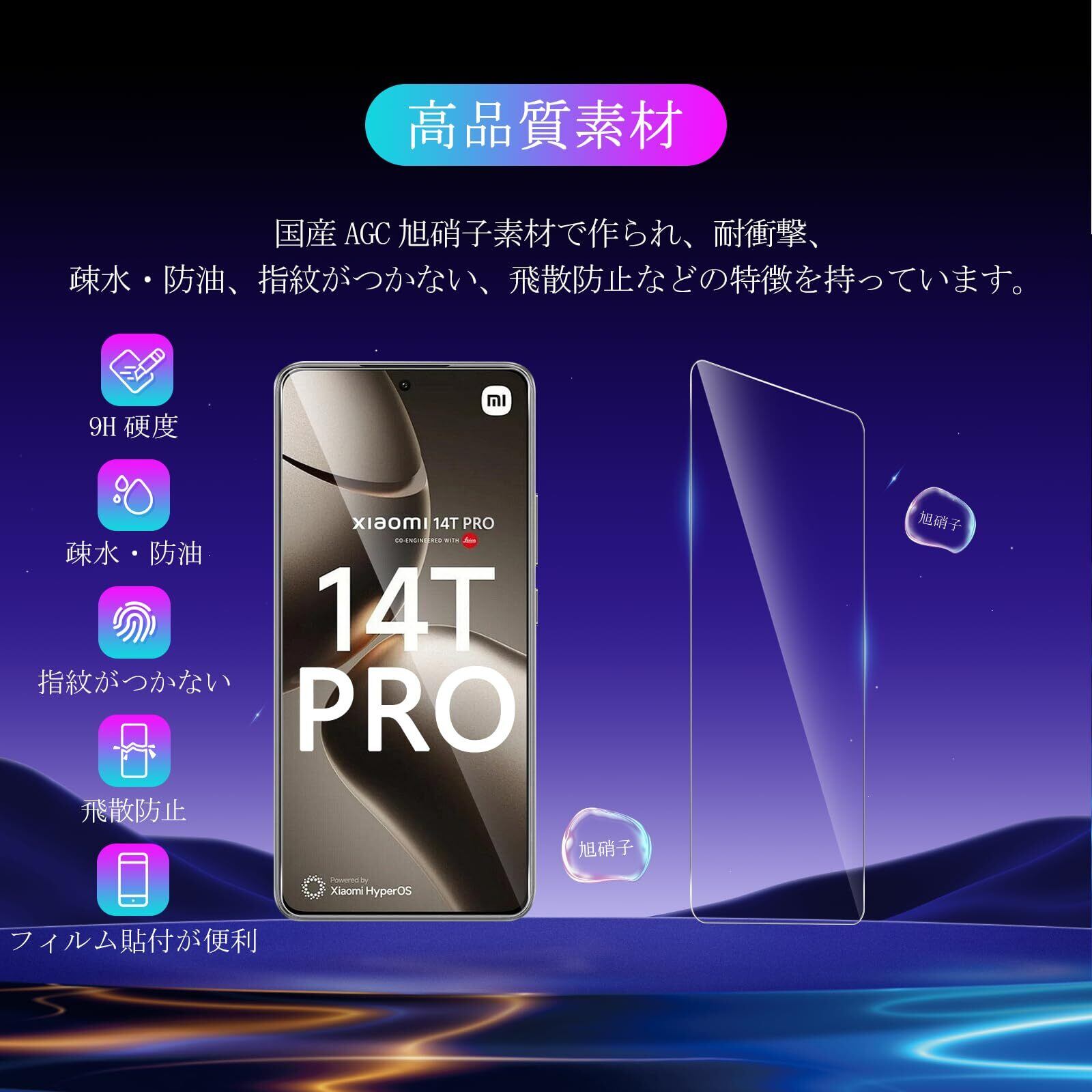 対応 Xiaomi 14T Pro ガラスフイルム ガイド枠付き 【2+2 枚セット-国産AGC旭硝子 】 xiaomi 14t pro フイルム 【2枚】+ レンズフィルム 【2枚】 シャオミ 14TPro 液晶保護フィルム 強化ガラス レンズ保護フィルム ケース 【硬度9H 耐衝撃 飛散防止 超薄 気泡ゼロ 3D Touch対応 撥油性 指紋防止 ラウンドエッジ加工】 TZMI14TP41
