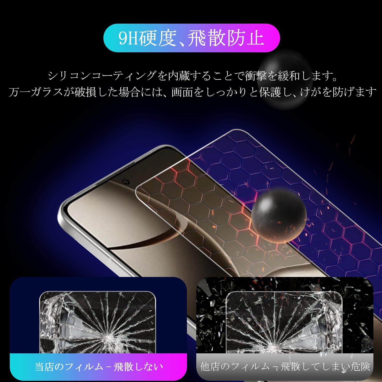 日本のAGC旭硝子素材を採用して作られており、その硬さは業界リードレベルの9Hに達し、強度が高いナノ弾性衝撃と防爆効果を備えて、画面が落下、衝撃、引っかき傷、日常の摩耗や損傷などを防止して、保護できます。