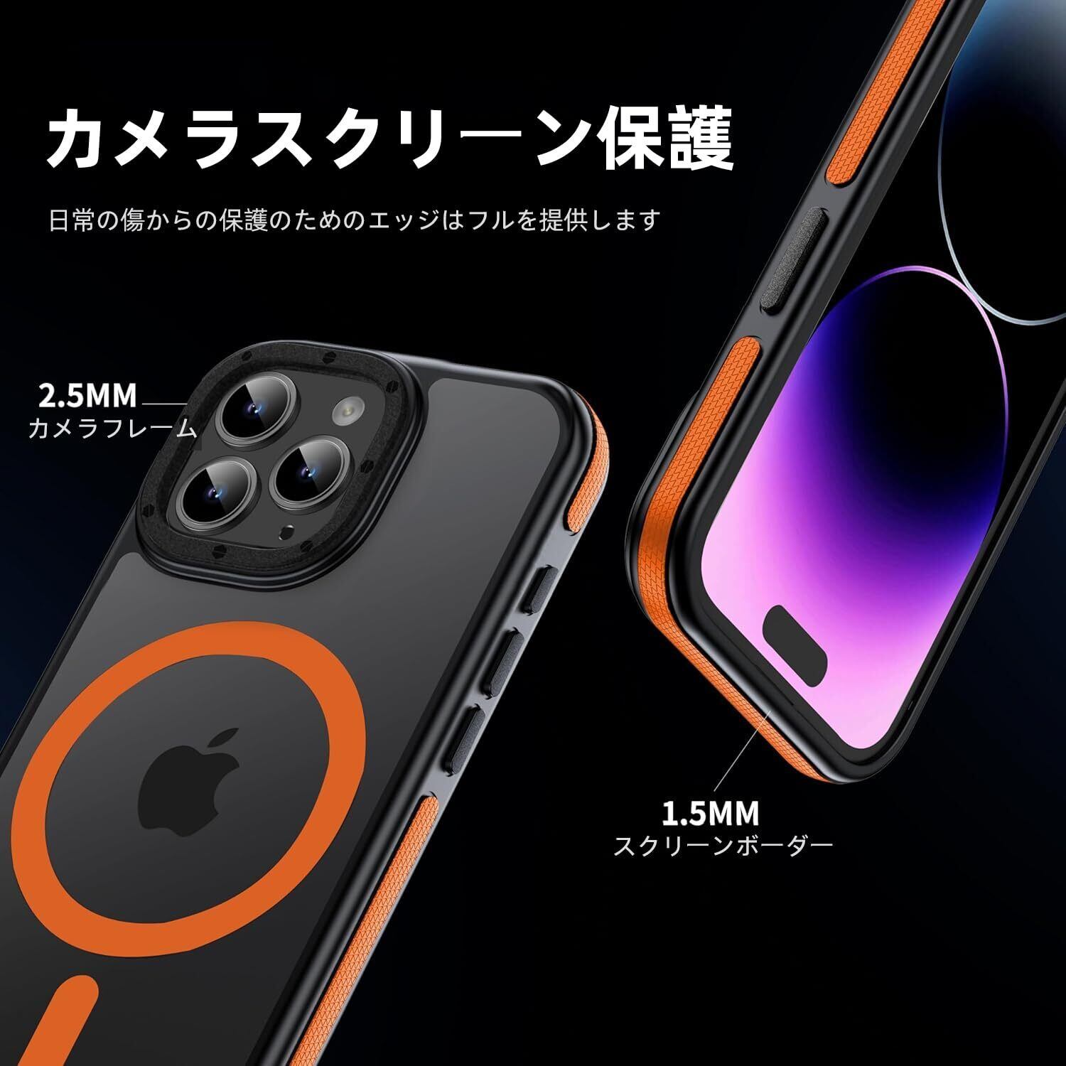 Cakorin iPhone 15 Pro 強力磁気 ケース[10インチ落下ミリタリー保護]MagSafe防振超薄15pro用ケース半透明マグネット耐衝撃マット感ワイヤレス充電対応,オレンジ