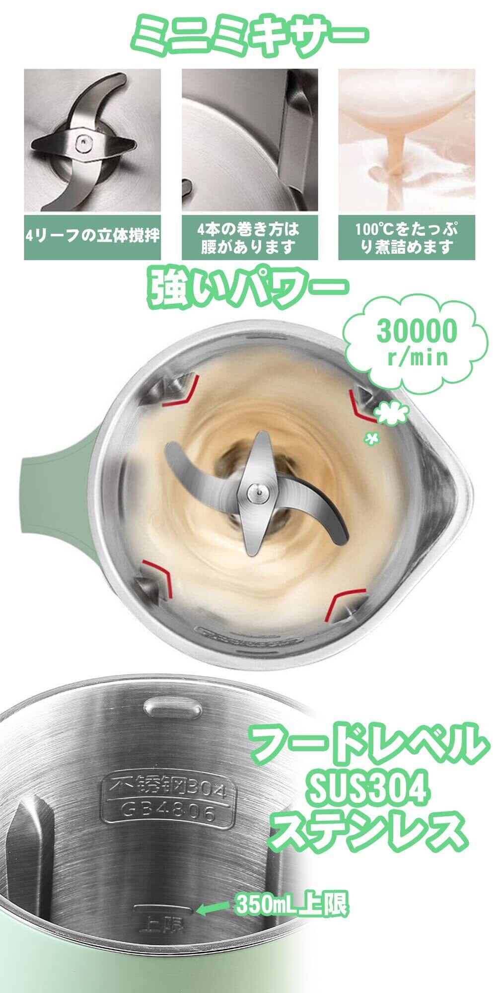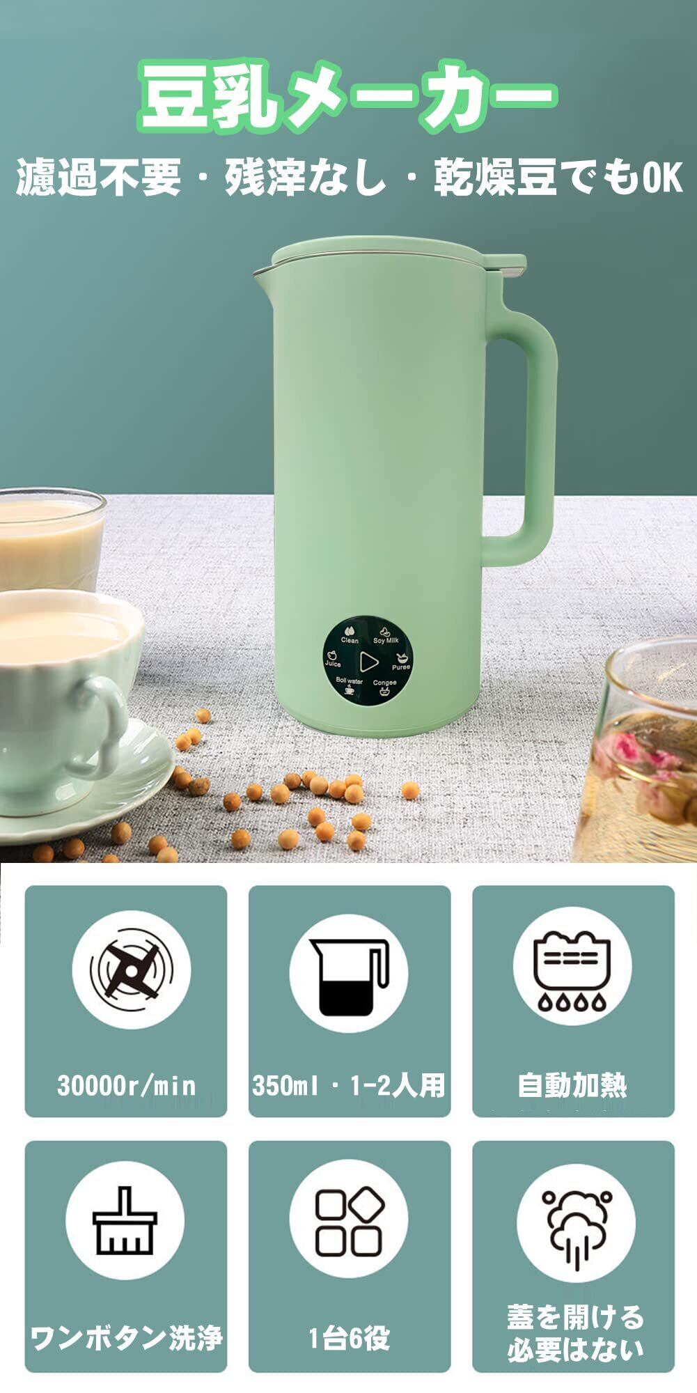 「25分で豆乳が作れる&濾過不要」 豆乳メーカー 350ml 豆乳・ペースト・お粥・お湯・ジュース・洗浄 ミキサー 雑穀米 離乳食 野菜 少量から作れる スープメーカー 乾燥豆でもOK 1-2人用