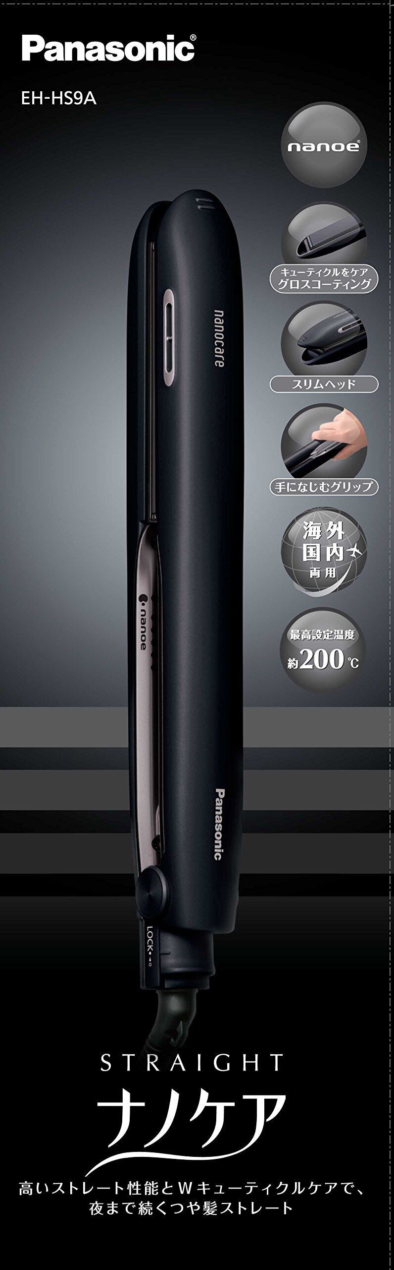 パナソニック ヘアアイロン ストレート用 海外対応 ナノケア 黒 EH-HS9A-K