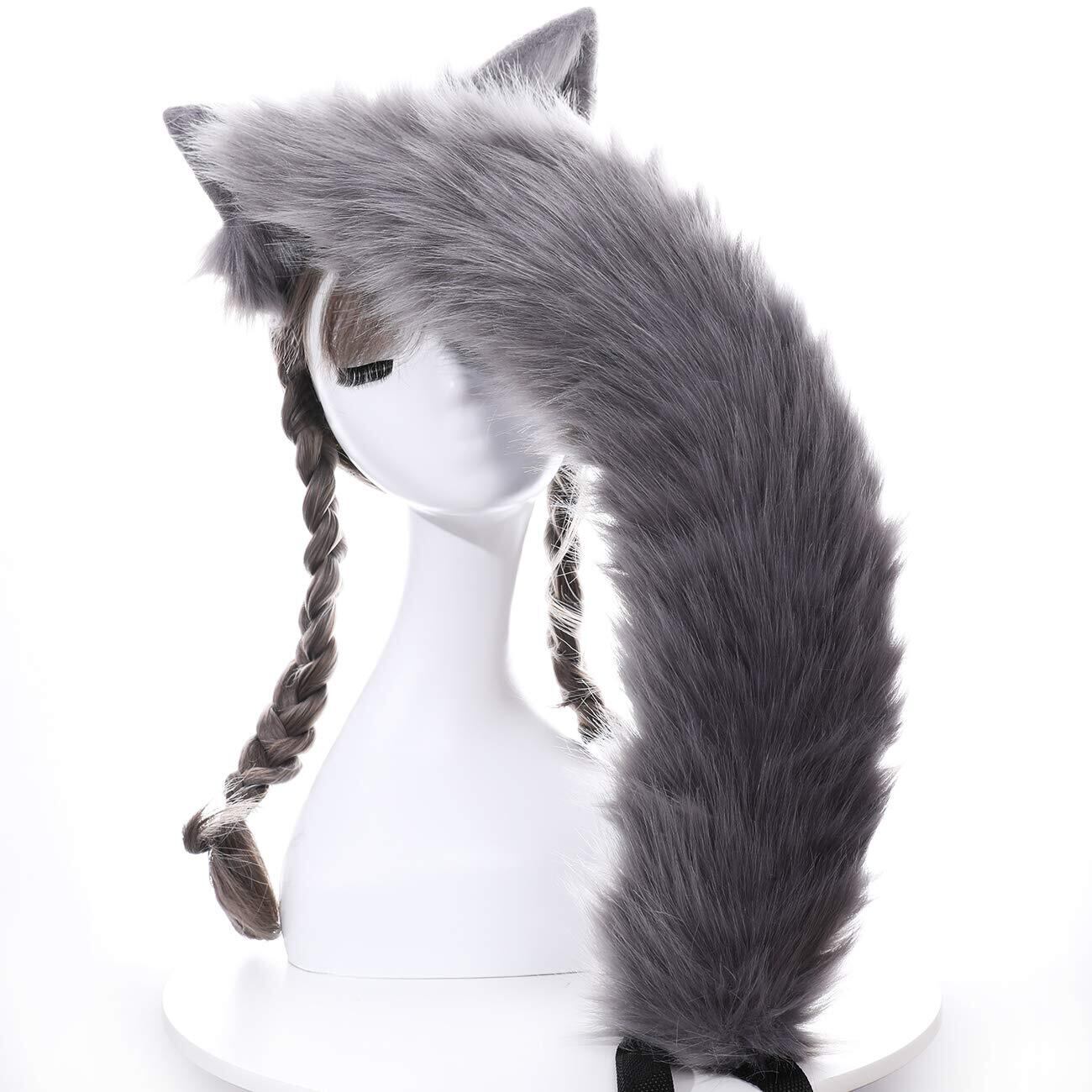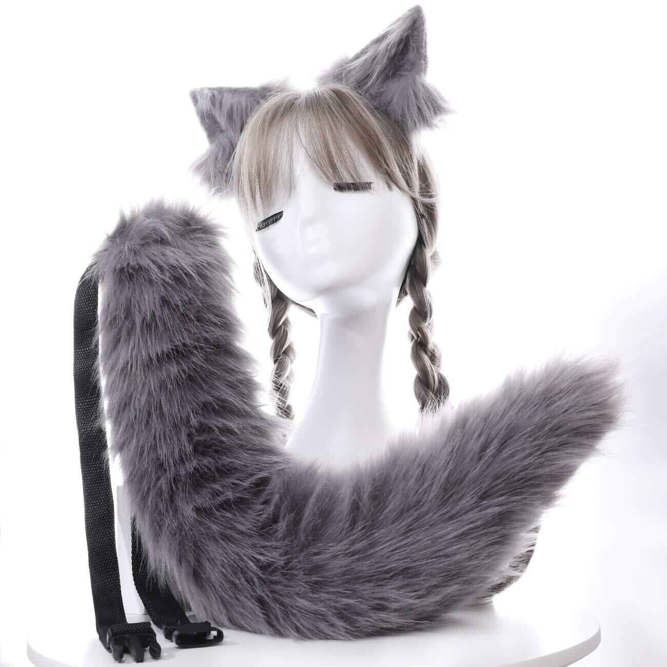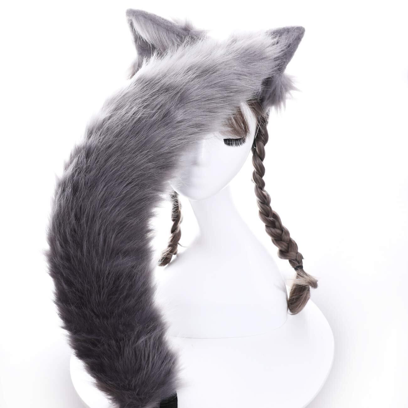 [SENMHS] きつねみみ きつねしっぽ 狐 狐 狼 耳 お尾 きつね尻尾 しっぽ 手作り モコモコ COSPLAY アクセサリー コスプレ コスチューム 用 衣装 仮装 変装 文化祭 イベント パーティー 学園祭 お遊戯 ハロウィン 男女兼用 尾+耳 03 (03グレー)