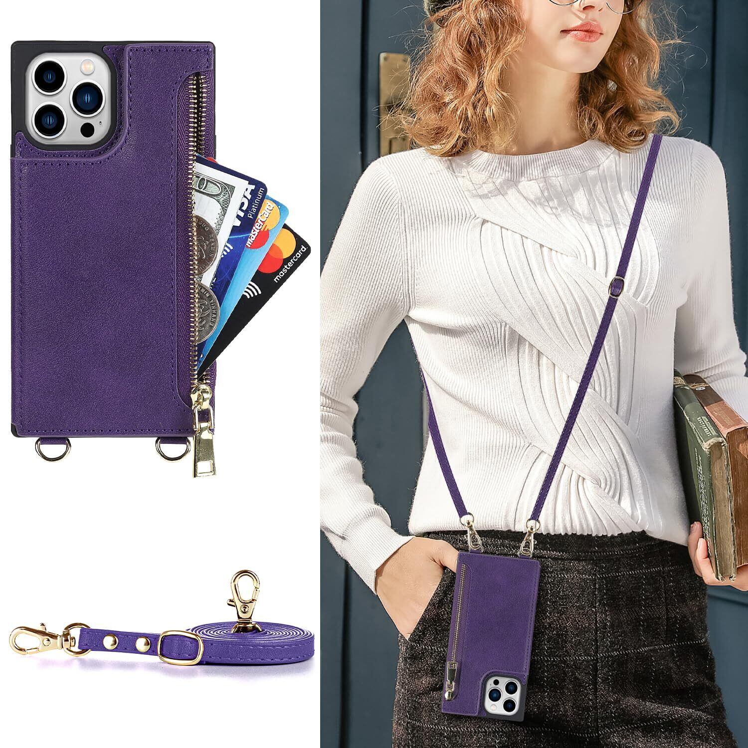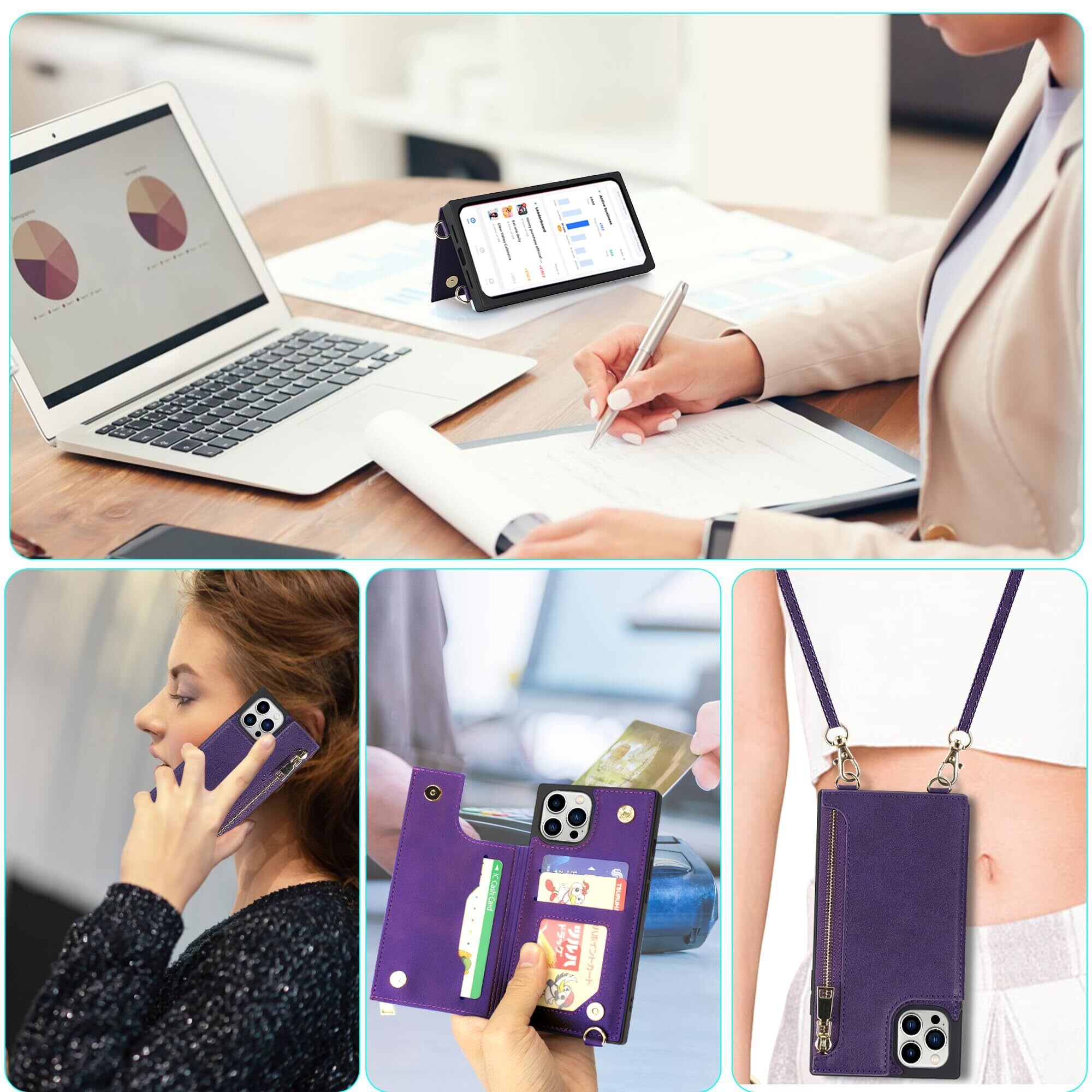 NODALA iPhone 14 Pro Max ケース 手帳型 背面収納 ショルダー あいふぉん14 ぷろまっくす カバー アイフォ14 プロマックス ケース 財布型 いphone14 Pro Maxスマホケース 肩掛け 斜めがけ 首かけ ストラップ付き 長さ調整可能 携帯ケース おしゃれ カード収納 左右開 耐衝撃 ステント機能 パープル
