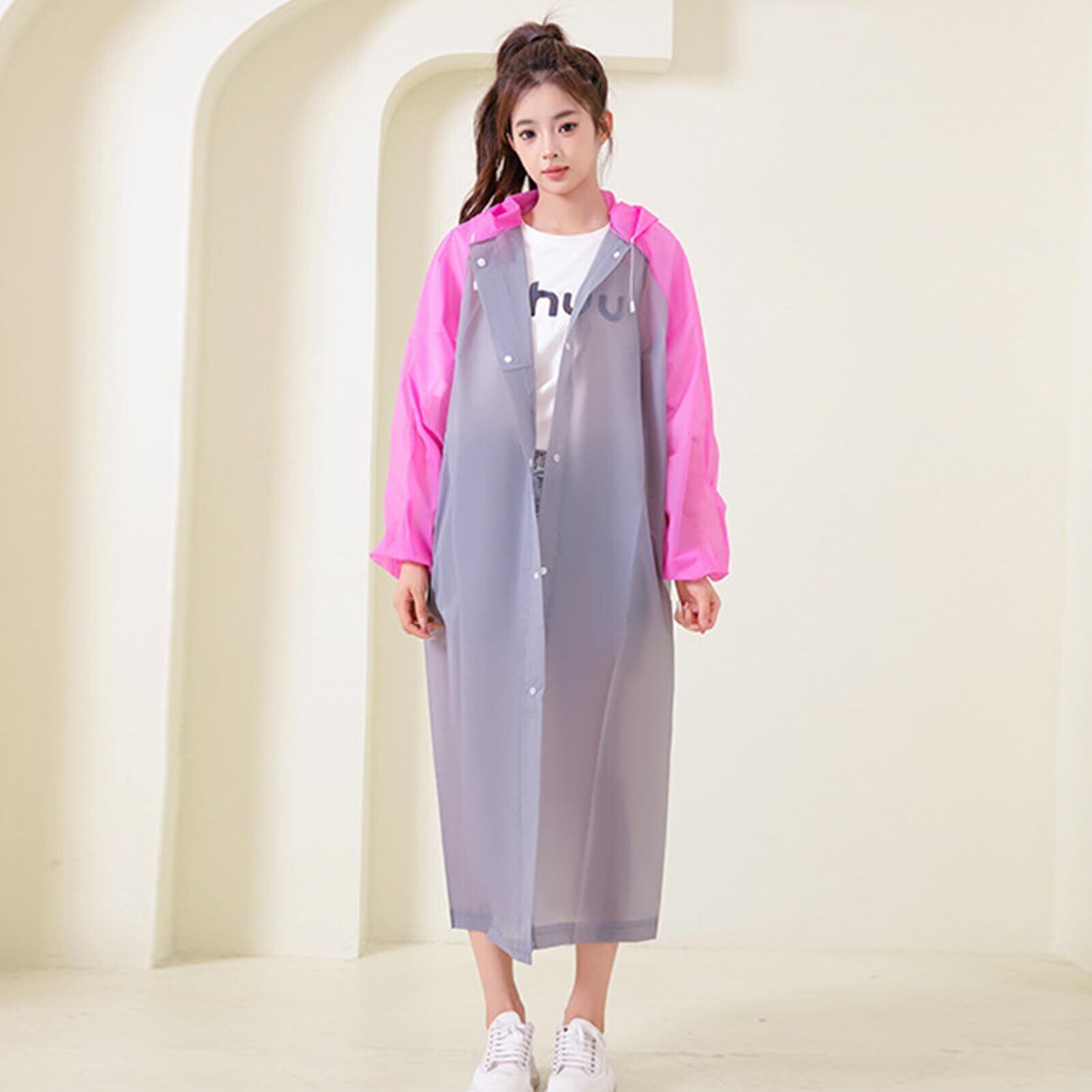 【多機能ロングレインコート】膝まで隠れる丈で体をしっかり包み込み、レインブーツを履いても足が濡れず、全身を雨から守ります。ゴム付きの袖 が雨水の浸入を防ぎます。レインコートの中は広く、リュックを背負ったときもとてもゆったりしています。梅雨の季節に簡単に対応します。