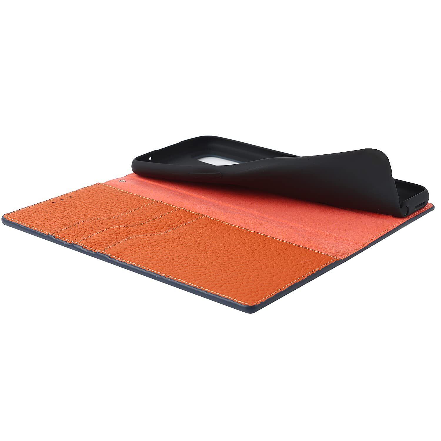 【素材】: シンプルさと高級感を兼ね備えたデザイン, 外殻は牛革製品 本革レザーを採用しており, 内側はスマートフォンにフィットし、隙間なくそれを保護するソフトTPUシリコーン材料で作られています。